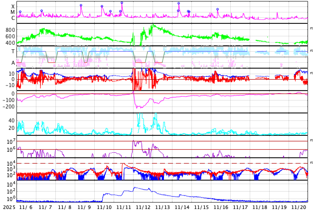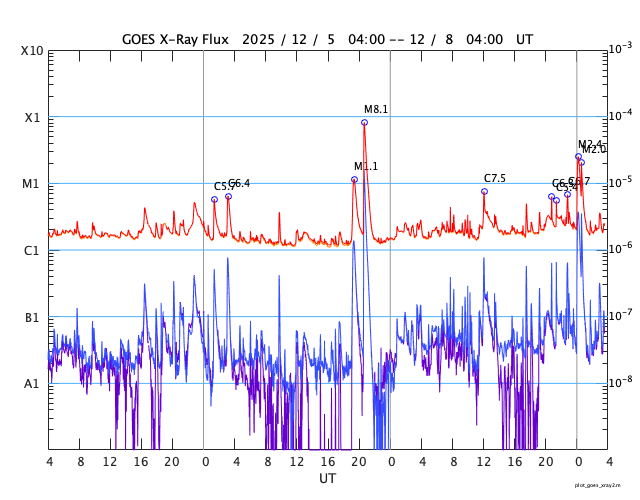 GOES衛星の太陽X線強度。赤・橙 = 0.1〜0.8 nm、青・紫 = 0.05〜0.4 nm (c) データ:NOAA/SWPC、作図:宇宙天気ニュース ![]() | ||||||||||||||||||||||||||||||||||||||||||||||||||||||||||||||||||||||||||||||||||||||||||||||||||||||||||||||||||||||||||||||||||||||||||||||||||||||||||||||||||||||||||||||||||||||||||||||||||||||||||||||||||||||||||||||||||||||||||||||||||||||||||||||||||||||||||||||||||||||||||||||||||||||||