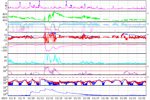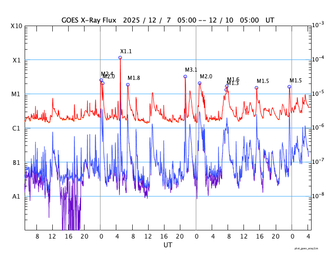 GOES衛星の太陽X線強度。赤・橙 = 0.1〜0.8 nm、青・紫 = 0.05〜0.4 nm (c) データ:NOAA/SWPC、作図:宇宙天気ニュース ![]() | |||||||||||||||||||||||||||||||||||||||||||||||||||||||||||||||||||||||||||||||||||||||||||||||||||||||||||||||||||||||||||||||||||||||||||||||||||||||||||||||||||||||||||||||||||||||||||||||||||||||||||||||||||||||||||||||||||||||||||||||||||||||||||||||||||||||||||||||||||||||||||||||||||||||||||||||||||||||||||||||||||||||||||||||||||||||||||||||||||||||||