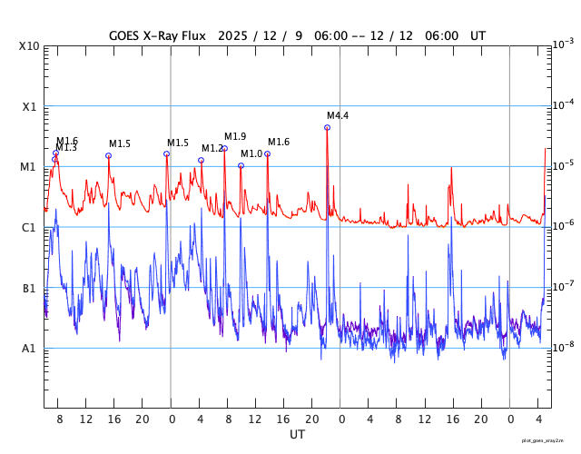 GOES衛星の太陽X線強度。赤・橙 = 0.1〜0.8 nm、青・紫 = 0.05〜0.4 nm (c) データ:NOAA/SWPC、作図:宇宙天気ニュース ![]() | |||||||||||||||||||||||||||||||||||||||||||||||||||||||||||||||||||||||||||||||||||||||||||||||||||||||||||||||||||||||||||||||||||||||||||||||||||||||||||||||||||||||||||||||||||||||||||||||||||||||||||||||||||||||||||||||||||||||||||||||||||||||||||||||||||||||||||||||||||||||||||||||||||||||||||||||||||||||||||||