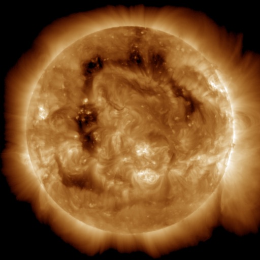 2025/12/13 12:25 更新 太陽風の速度が500km/秒に高まっています。太陽は穏やかになりそうです。 担当 篠原 昨日のニュースの後、太陽風の速度は420km/秒で推移していましたが、 今朝くらいからゆっくりと高まって、 ちょうど500km/秒と高速の状態に達したところです。 GOES衛星SUVI 195で見えていた コロナホールの影響がやって来た様です。 太陽風の磁場強度は、 10nTから15nTへ更に強まっています。 このため、速度はこの後も上昇が続くかもしれません。 磁場の南北成分は、 南向きの強まりが続き、磁気圏の活動も活発な状態が続きました。 AE指数は、500〜1000nTの中規模の変化が連続しています。 しかし、太陽風のグラフの最後で、 南北成分は北向きに切り替わっています。 この状態が続くと、磁気圏の活動は静かになるでしょう。 GOES衛星SUVI 195を見ると、 コロナホールは、高緯度域で大きく曲がって、 東側(左側)で赤道まで伸びています。 高速の太陽風は、この後どの様に推移するでしょうか。 変化に注目して下さい。 太陽は、南西の端(左下)の4296、4294黒点群で、 M2.0、M1.1の中規模フレアが発生しています。 2つの領域は太陽の向こう側に進むので、 太陽は穏やかになりそうです。
