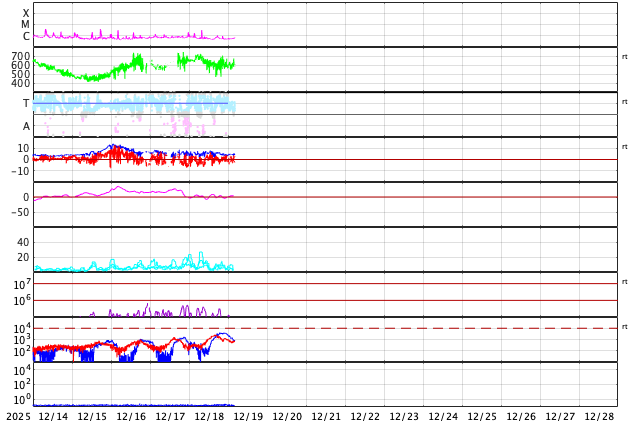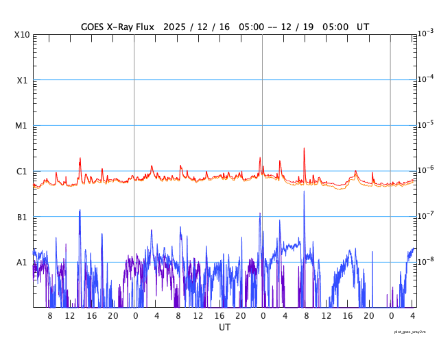 GOES衛星の太陽X線強度。赤・橙 = 0.1〜0.8 nm、青・紫 = 0.05〜0.4 nm (c) データ:NOAA/SWPC、作図:宇宙天気ニュース ![]() | ||||||||||||||||||||||||||||||||||||||||||||||||||||||||||||||||||||||||||||||||||||||||||||||||||||||||||||||||||||||||||||||||||||||||||||||||||||||||||||||||||||||||||||||||||||||||||||||||||||||||||||||||||||||||||||||||||||||||||||