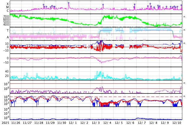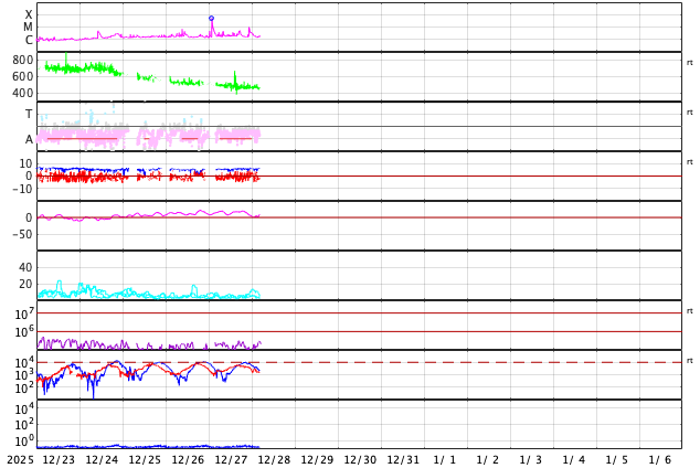 GOES衛星の太陽X線強度。赤・橙 = 0.1〜0.8 nm、青・紫 = 0.05〜0.4 nm (c) データ:NOAA/SWPC、作図:宇宙天気ニュース ![]() | |||||||||||||||||||||||||||||||||||||||||||||||||||||||||||||||||||||||||||||||||||||||||||||||||||||||||||||||||||||||||||||||||||||||||||||||||||||||||||||||||||||||||||||||||||||||||||||||||||||||||||||||||||||||||||||||||||||||||||||||||||||||||||||||