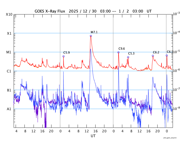 GOES衛星の太陽X線強度。赤・橙 = 0.1〜0.8 nm、青・紫 = 0.05〜0.4 nm (c) データ:NOAA/SWPC、作図:宇宙天気ニュース ![]() | ||||||||||||||||||||||||||||||||||||||||||||||||||||||||||||||||||||||||||||||||||||||||||||||||||||||||||||||||||||||||||||||||||||||||||||||||||||||||||||||||||||||||||||||||||||||||||||||||||||||||||||||||||||||||||||||||||||||||||||||||||||||||||||||||||||