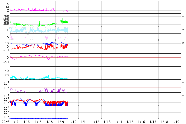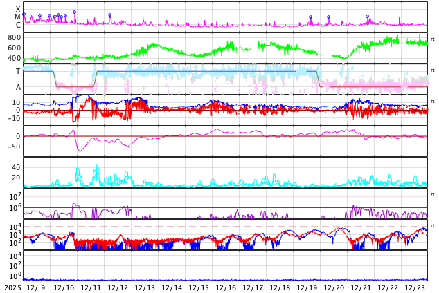 GOES衛星の太陽X線強度。赤・橙 = 0.1〜0.8 nm、青・紫 = 0.05〜0.4 nm (c) データ:NOAA/SWPC、作図:宇宙天気ニュース ![]() | |||||||||||||||||||||||||||||||||||||||||||||||||||||||||||||||||||||||||||||||||||||||||||||||||||||||||||||||||||||||||||||||||||||||||||||||||||||||||||||||||||||||||||||||||||||||||||||||||||||||||||||||||||||||||||||||||||||||||||