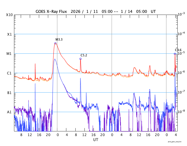 GOES衛星の太陽X線強度。赤・橙 = 0.1〜0.8 nm、青・紫 = 0.05〜0.4 nm (c) データ:NOAA/SWPC、作図:宇宙天気ニュース ![]() | |||||||||||||||||||||||||||||||||||||||||||||||||||||||||||||||||||||||||||||||||||||||||||||||||||||||||||||||||||||||||||||||||||||||||||||||||||||||||||||||||||||||||||||||||||||||||||||||||||||||||||||||||||||||||||||