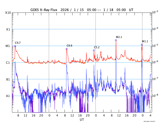GOES衛星の太陽X線強度。赤・橙 = 0.1〜0.8 nm、青・紫 = 0.05〜0.4 nm (c) データ:NOAA/SWPC、作図:宇宙天気ニュース ![]() | |||||||||||||||||||||||||||||||||||||||||||||||||||||||||||||||||||||||||||||||||||||||||||||||||||||||||||||||||||||||||||||||||||||||||||||||||||||||||||||||||||||||||||||||||||||||||||||||||||||||||||||||||||||||||||||||||||||||||||||||||||||||||||||||||