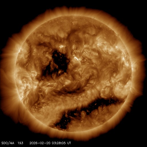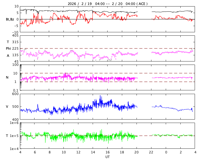 - 2026/ 2/19 11:54 太陽風の速度は480km/秒に下がって、やや高速の状態です。
