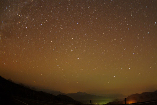 2004年11月9日のオーロラ撮影データ撮影時刻:2004年11月9日、00:02:32、00:19:20、01:08:54 JST 撮影地:栃木県日光霧降高原 撮影機材:富士S2Pro+ニコン16mmF2.8(少しトリミング) 撮影者:武田康男氏 E=mail : takeda@skies.jp Home Page : http://www.skies.jp/ | ||||||||