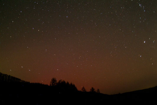 2004年11月10日のオーロラ撮影データ撮影時刻:2004年11月10日、18:40:51 JST 撮影地:北海道常呂郡端野町北登 撮影機材:フジS2プロ+ニコンAIS 16mmf2.8をf4に絞る ISO:200 露出:3分 処理:レベル補正のあと、リサイズ 撮影者:三澤史明氏 E=mail : QZW03651@nifty.ne.jp | ||||||||