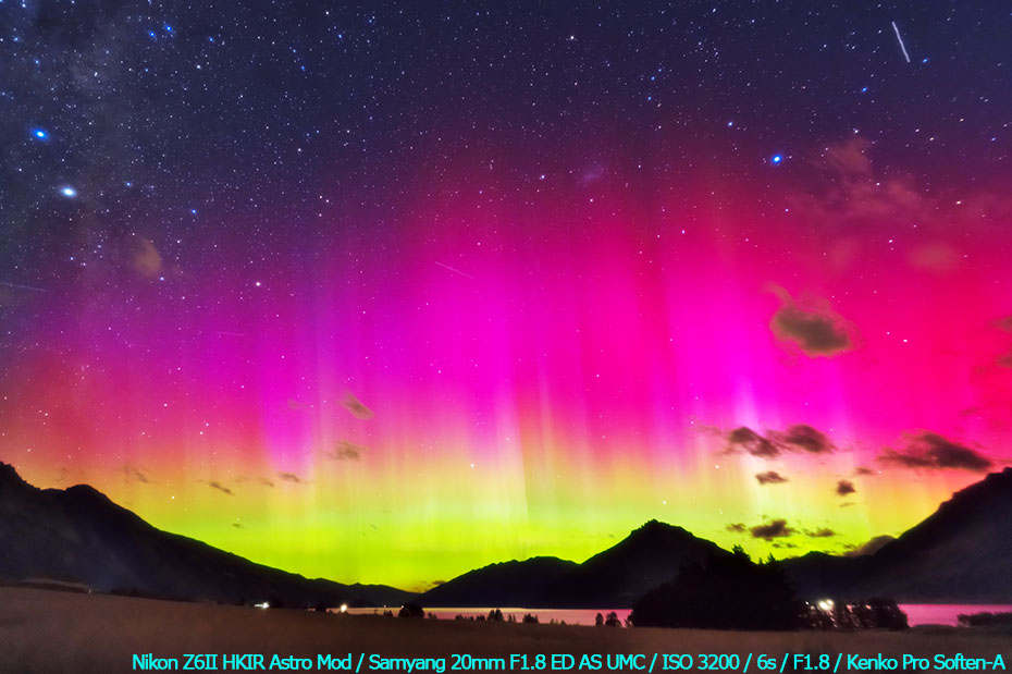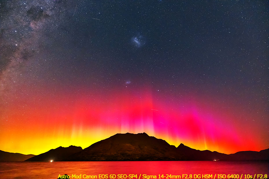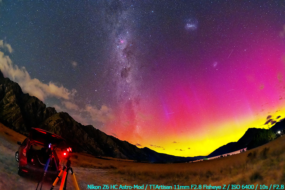 ニュージーランド南島クィーンズタウンで、現地2月22日23時55分(世界時22日10時55分)に撮影されたオーロラ。