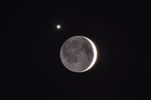 16日の夕方、夕暮れの西の空で月と金星が大接近しました。