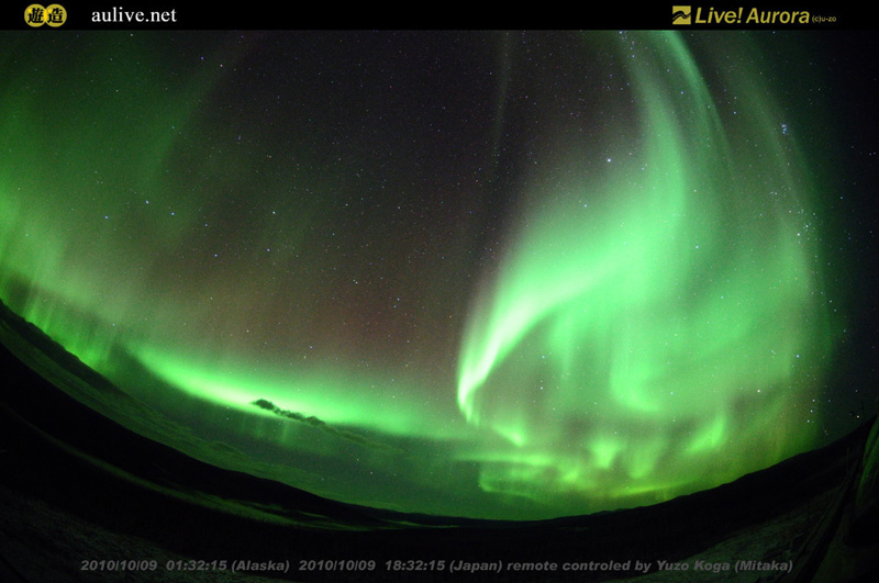 アラスカで撮影された、10月9日のオーロラの様子。Live! オーロラより。