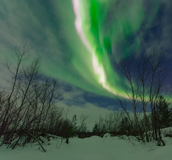 現地2月16日に、ロシア・ムルマンスク州で撮影されたオーロラ。