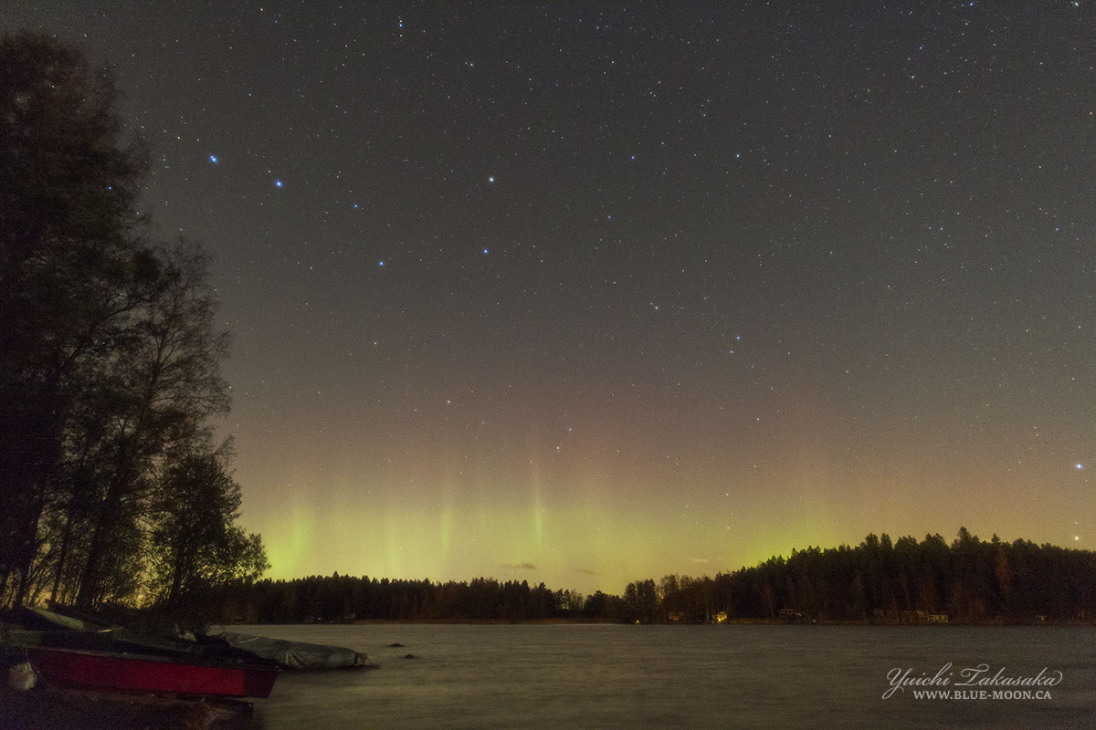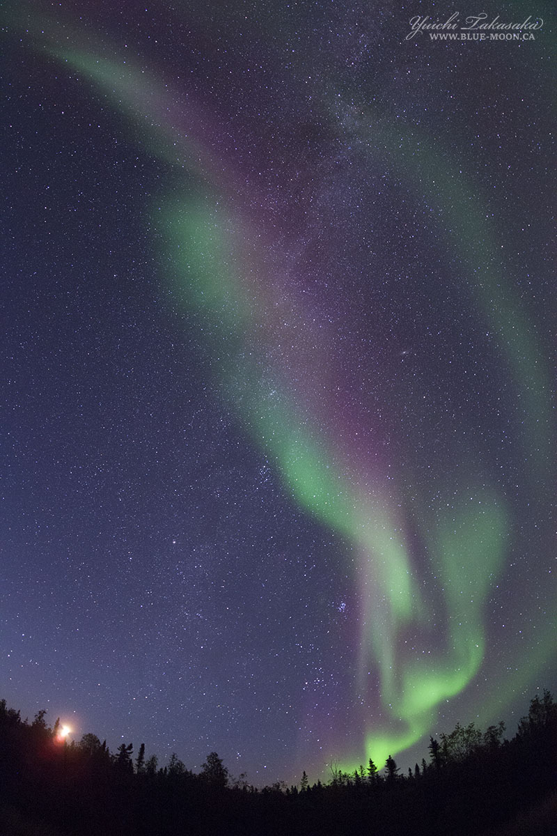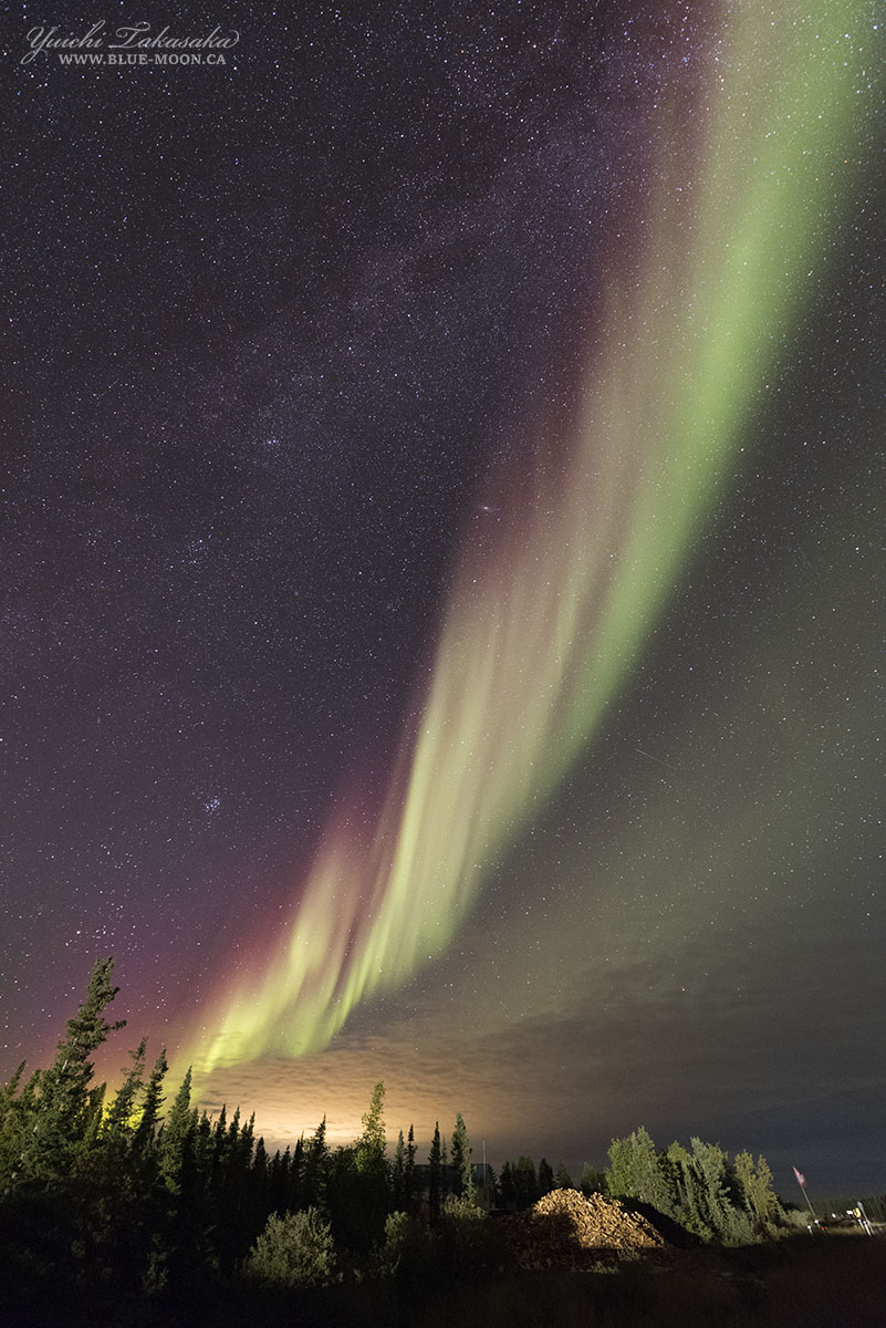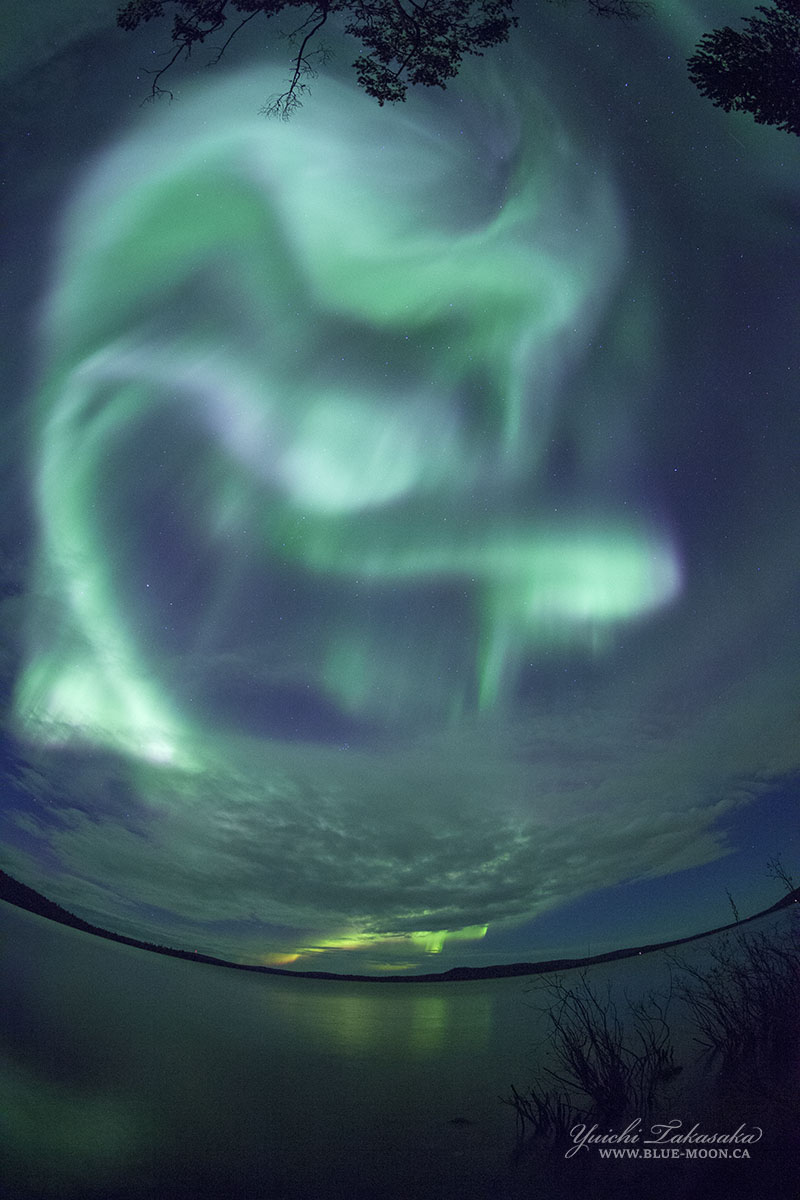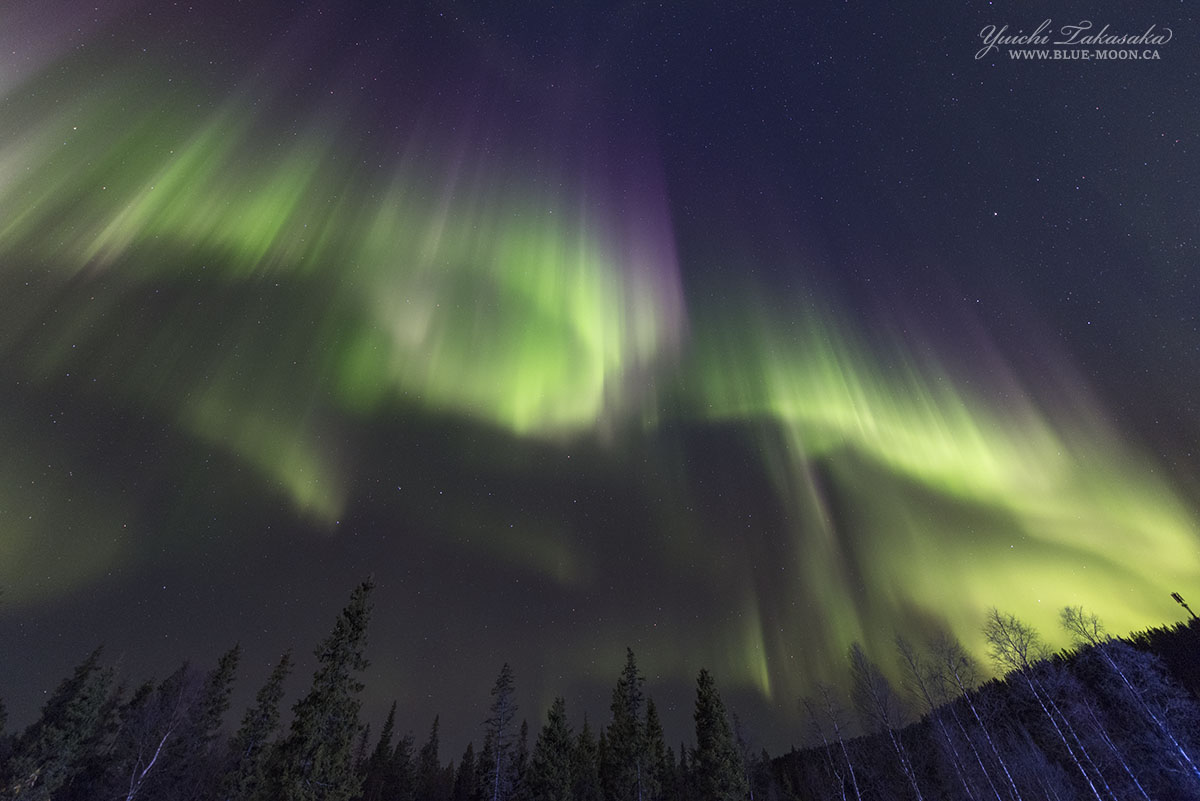 カナダ北西部のイーグルプレーンズで、現地4月5日3〜4時頃に撮影されたオーロラ。