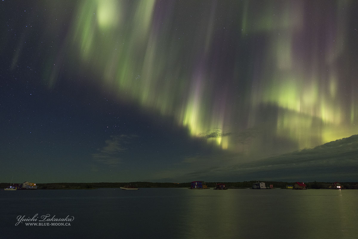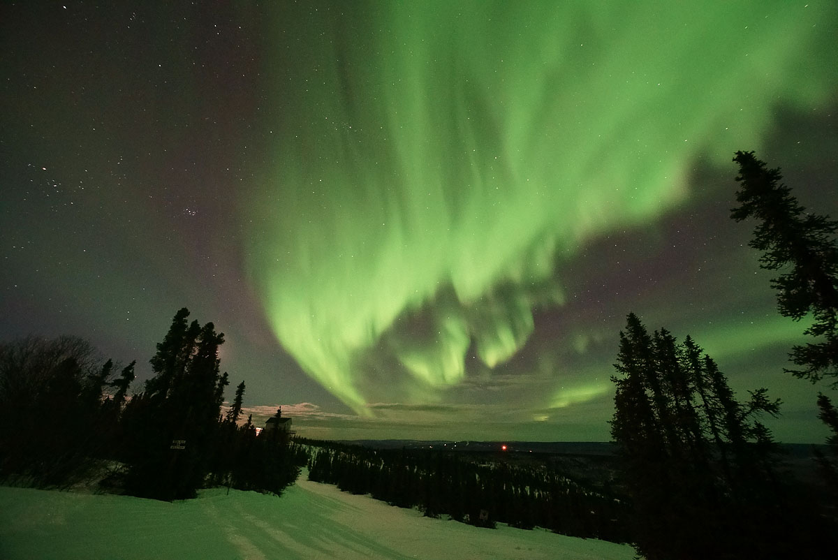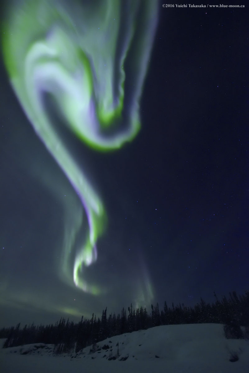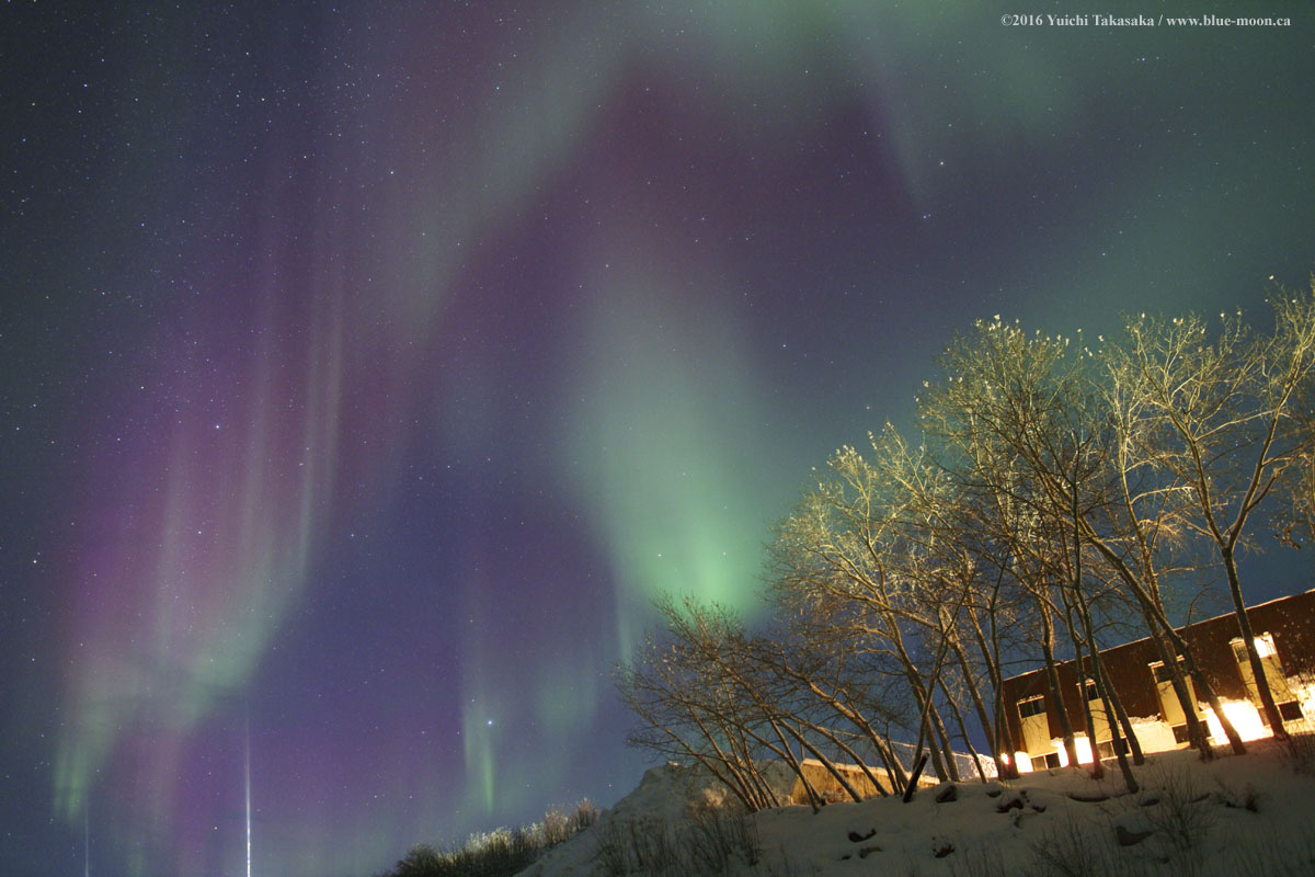 カナダ北西部のイーグルプレーンズで、現地4月5日3〜4時頃に撮影されたオーロラ。