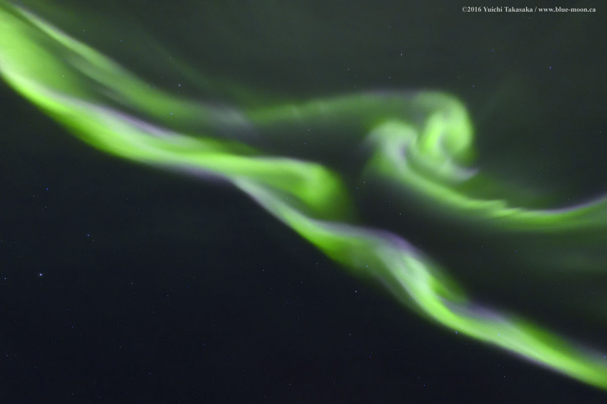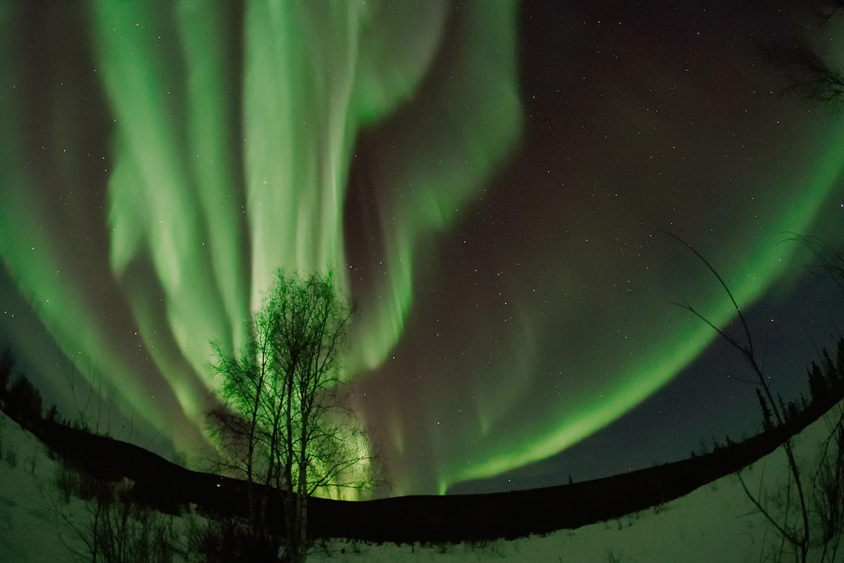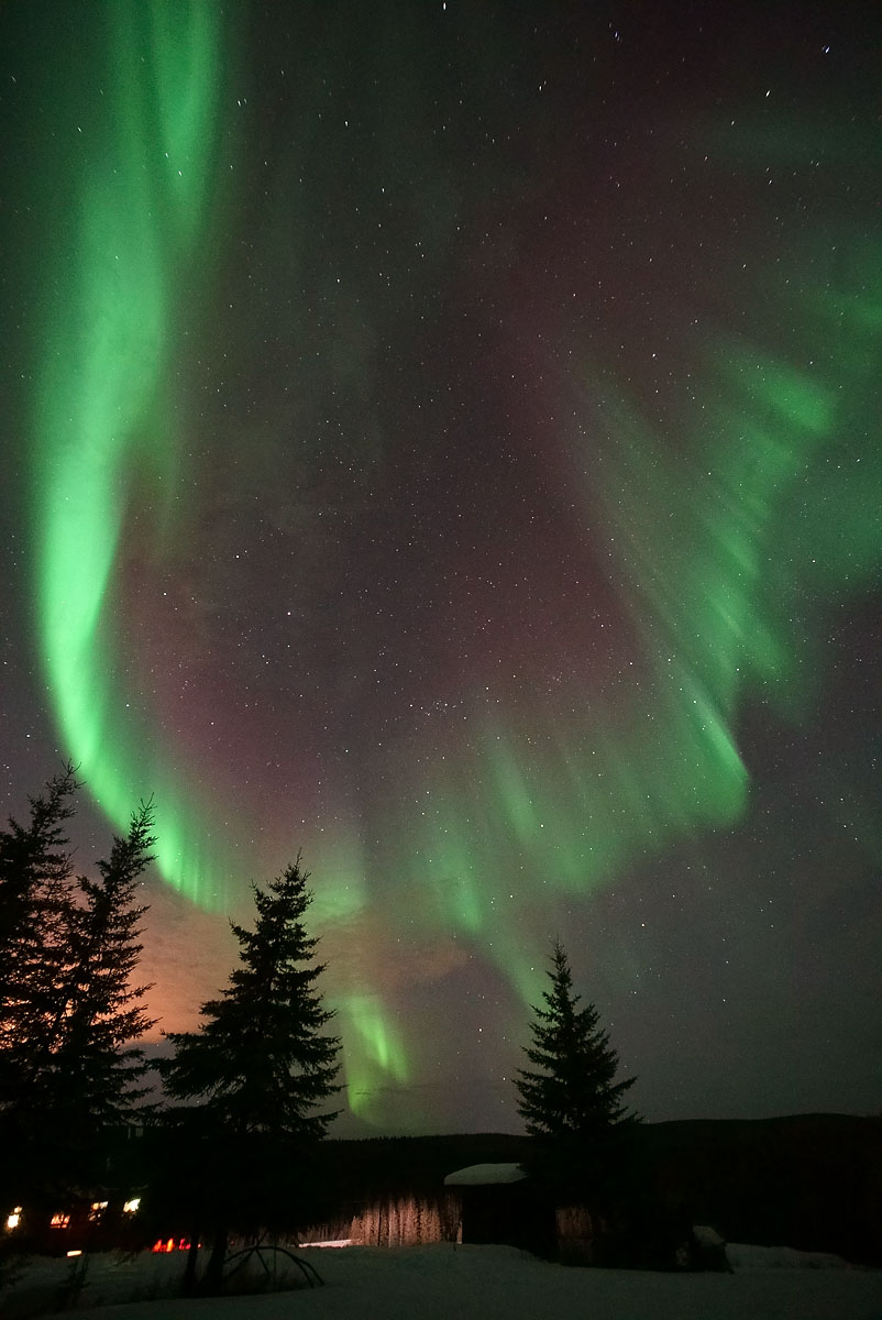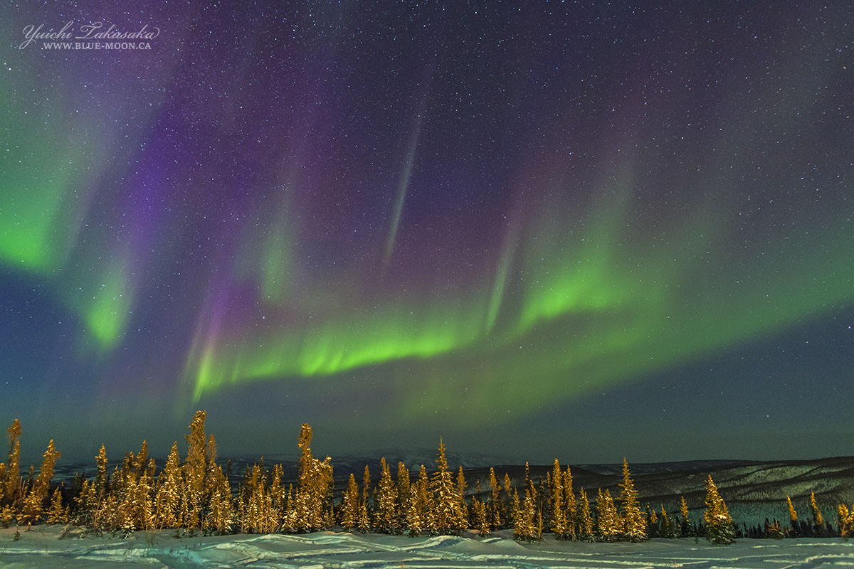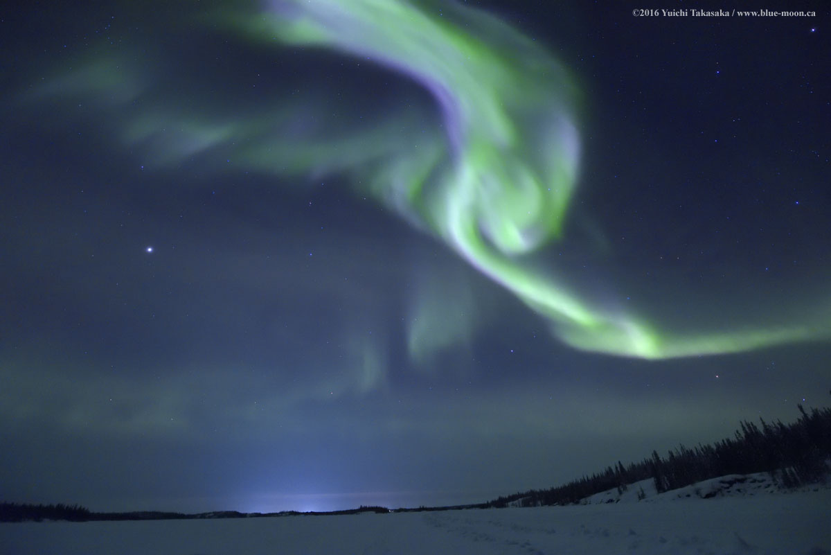 カナダ北西部のイーグルプレーンズで、現地4月5日3〜4時頃に撮影されたオーロラ。