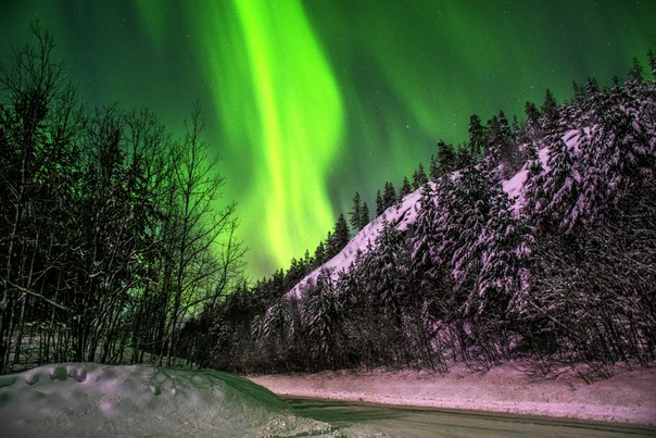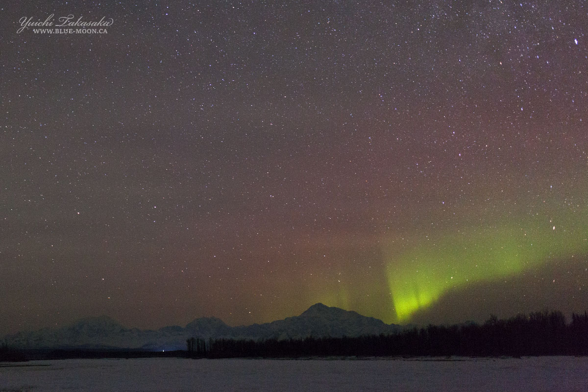 アラスカの南のタルキートナで、現地11月30日4時頃に撮影された オーロラ。