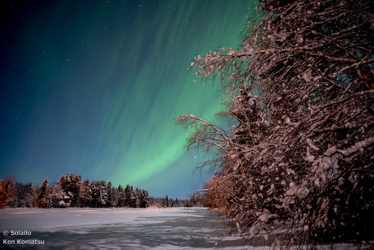 フィンランド北部、Ukonjarvi Lake、および、 Levi にて、 現地10月2日、3日の夜に撮影されたオーロラ。