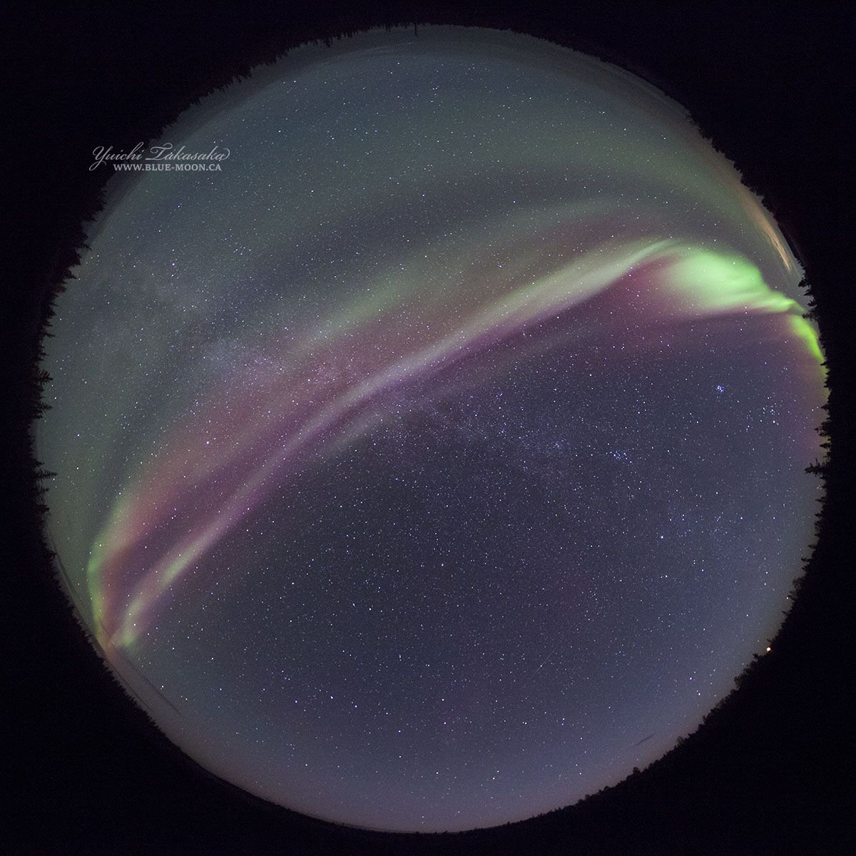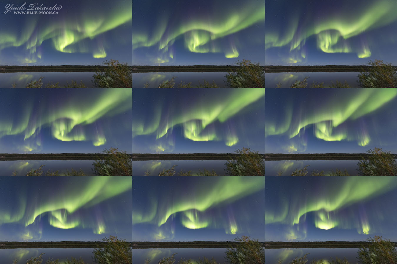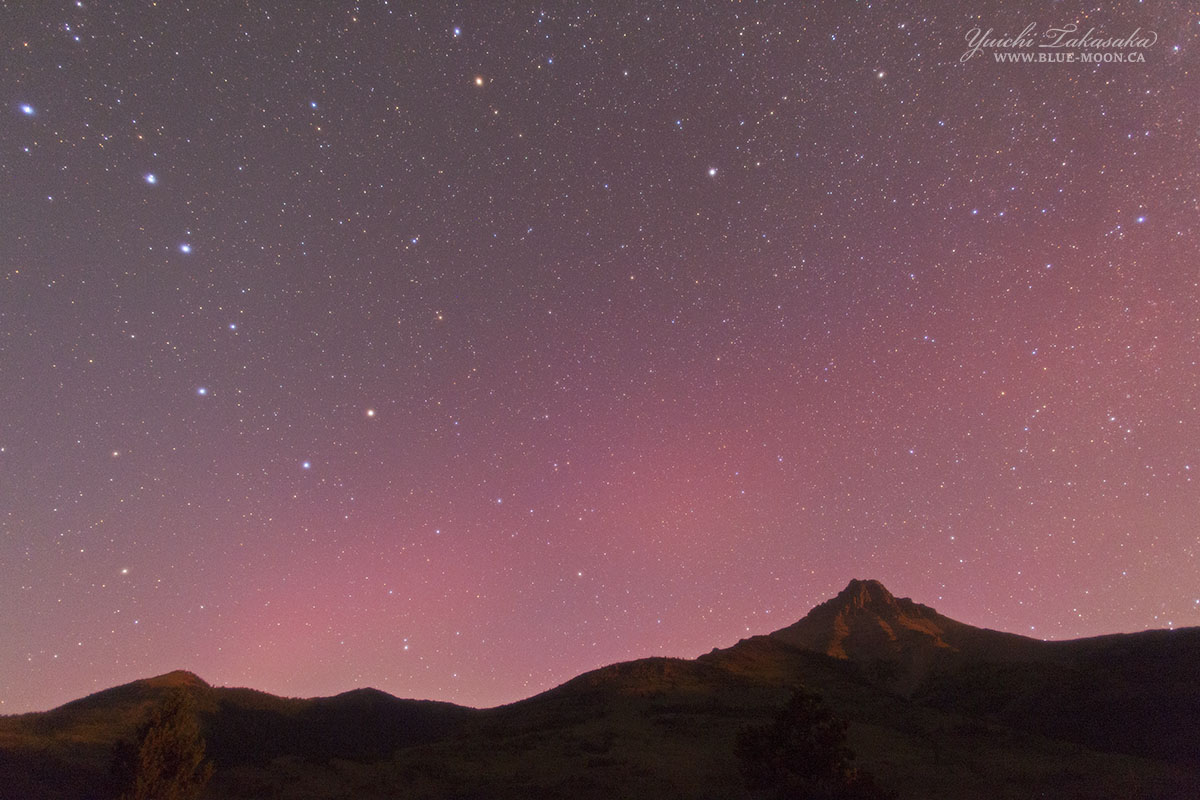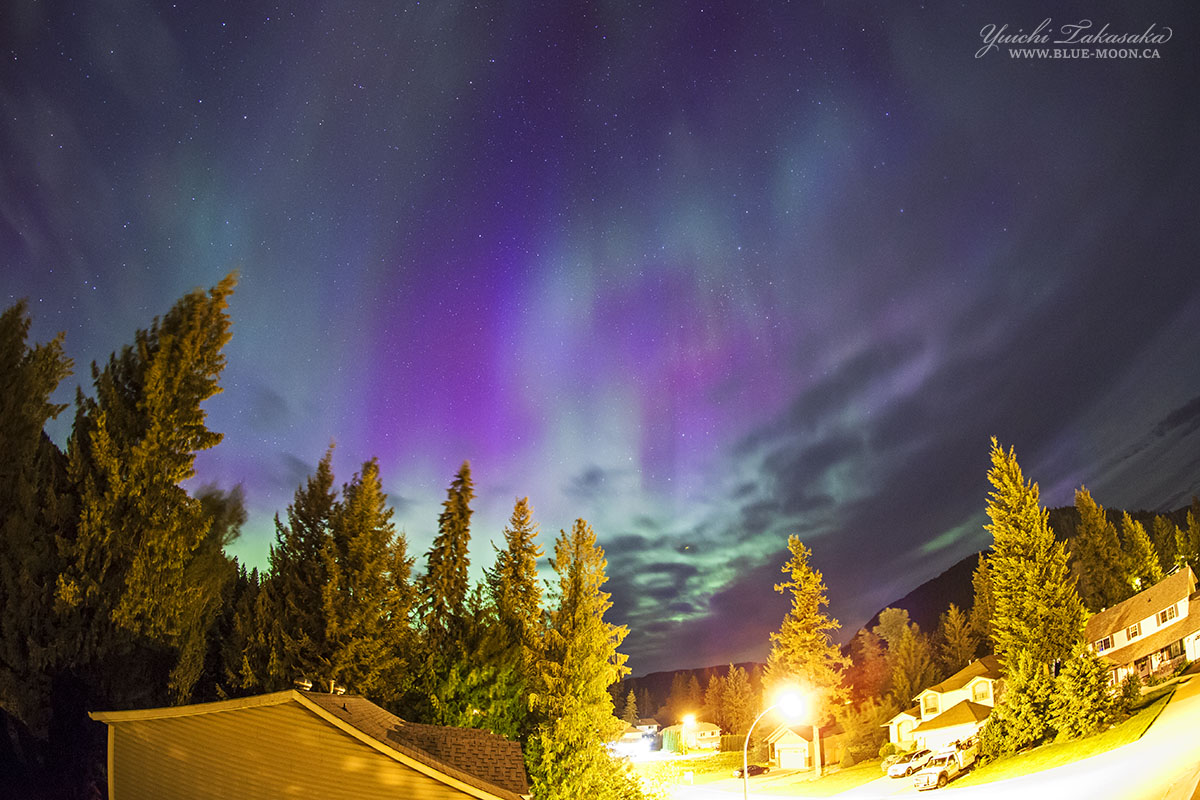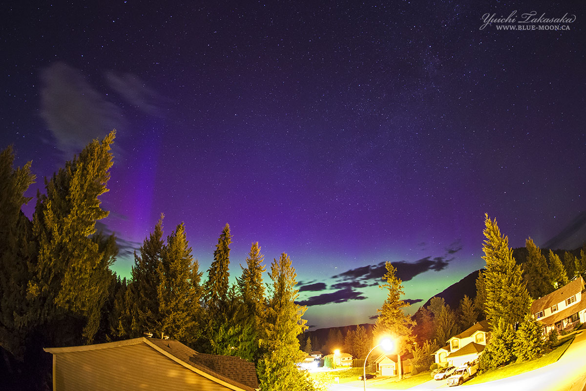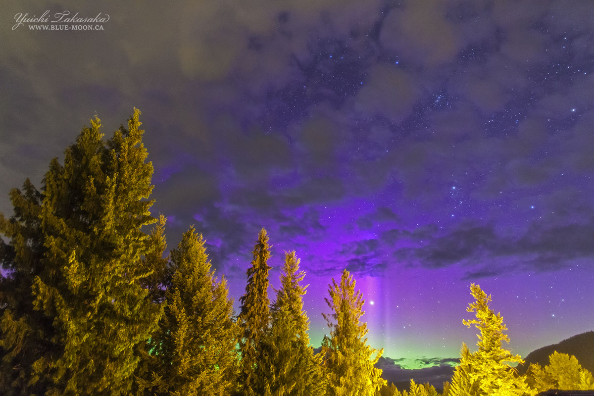 カナダ・ブリティッシュコロンビア・ランビーで、現地12日1〜3時(世界時12日8〜11時)頃に撮影されたオーロラ。