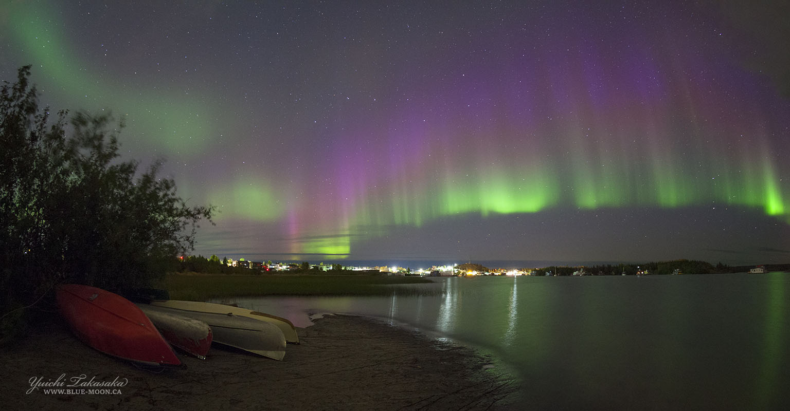カナダのウォータートンレイクス国立公園で、現地25日0時(世界時25日6時)に撮影されたオーロラ。