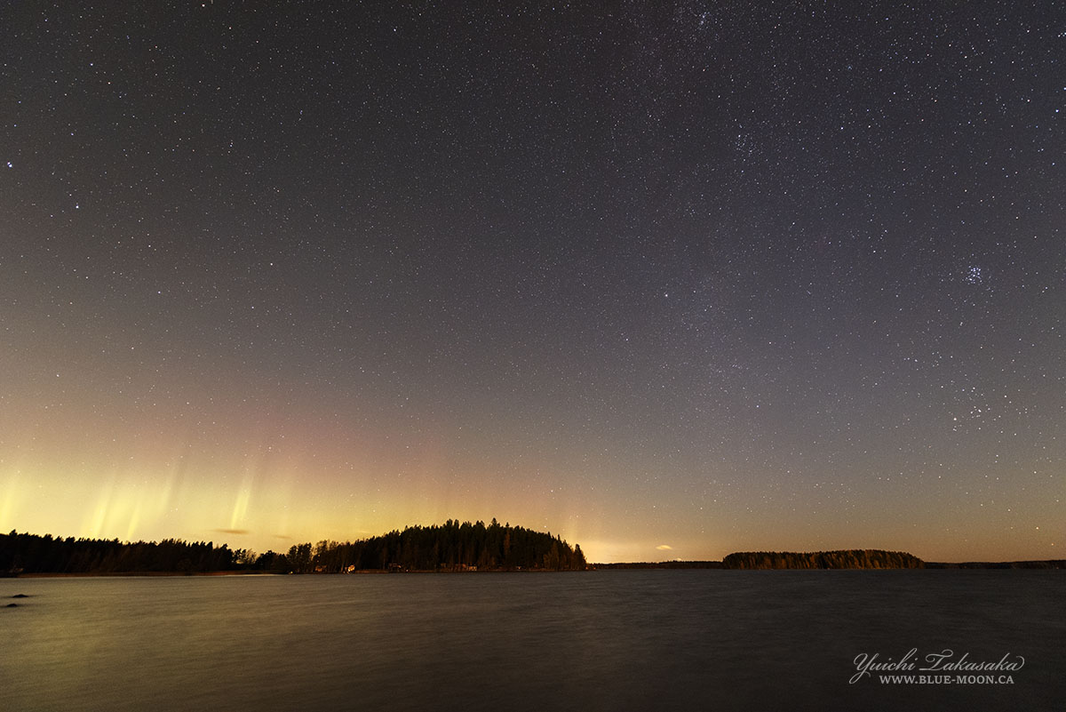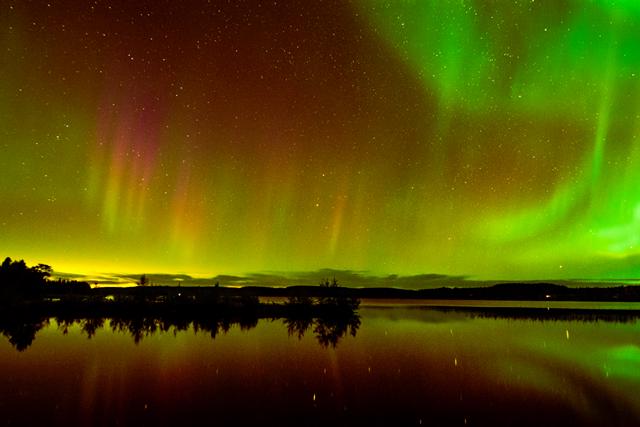 フィンランド・ロバニエミ北西の湖 Raanujarvi Lake にて、現地25日21時半頃に撮影されたオーロラ。