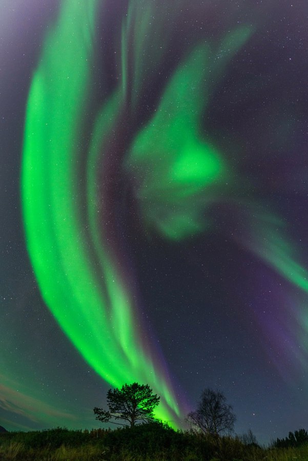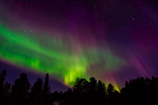 9月1〜2日に、フィンランド・ロヴァニエミから北西60kmのラーヌヤルビで撮影されたオーロラ。