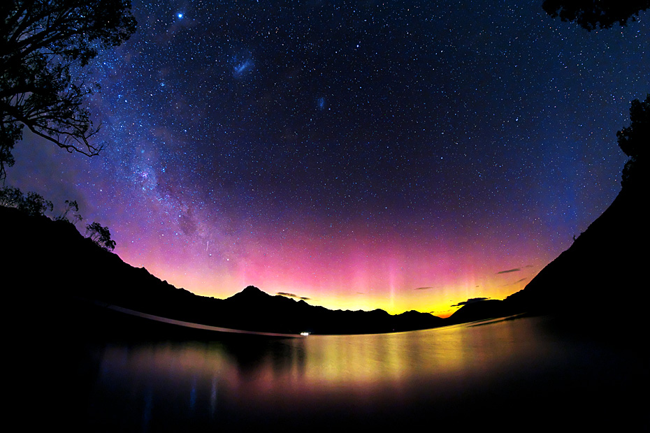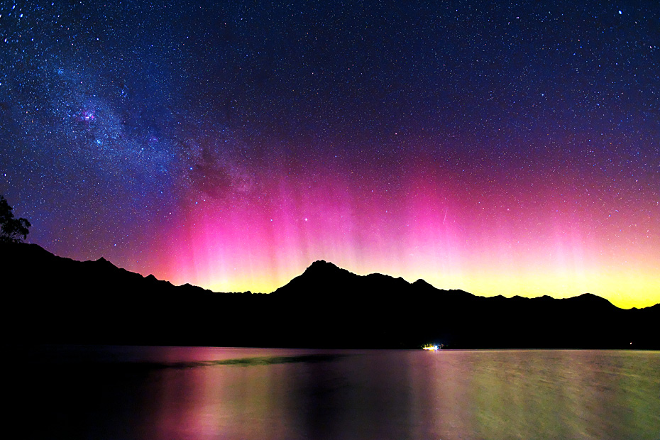 ニュージーランド南島クィーンズタウンで、現地26日0〜2時(世界時25日11〜13時)頃に撮影されたオーロラ。