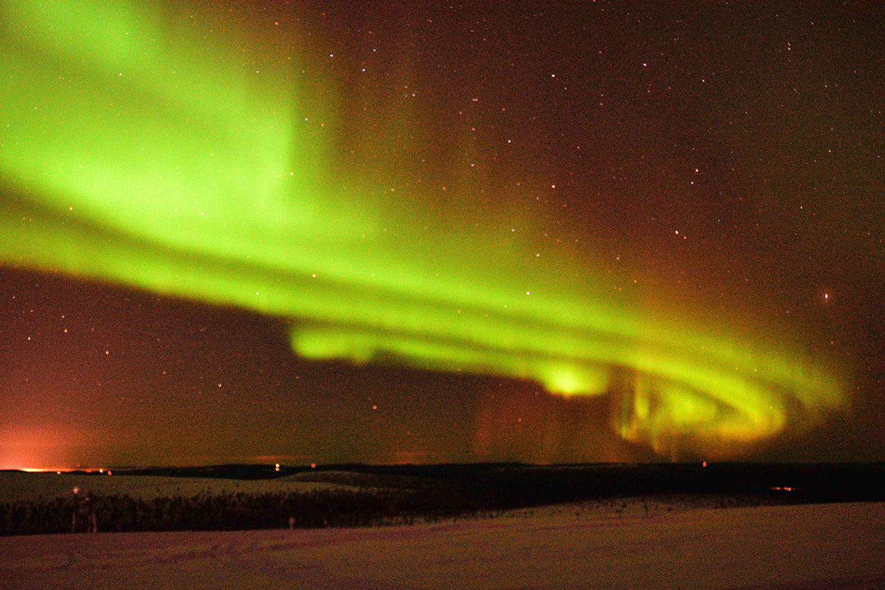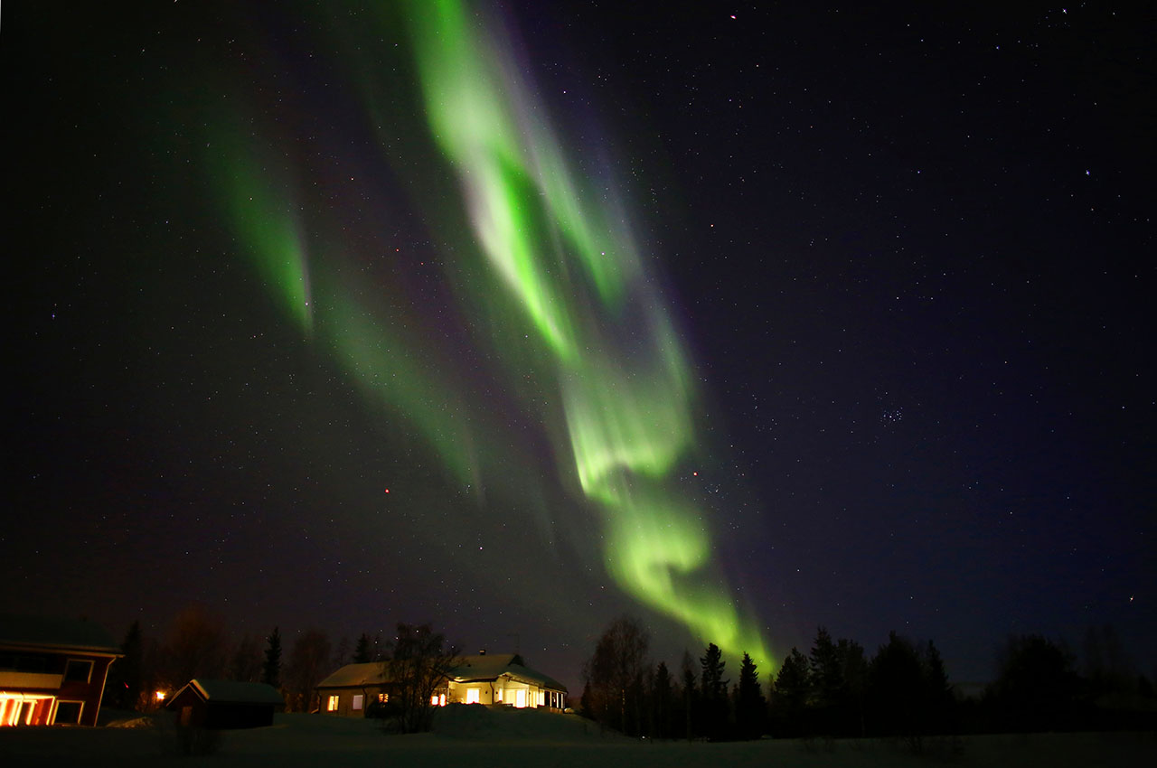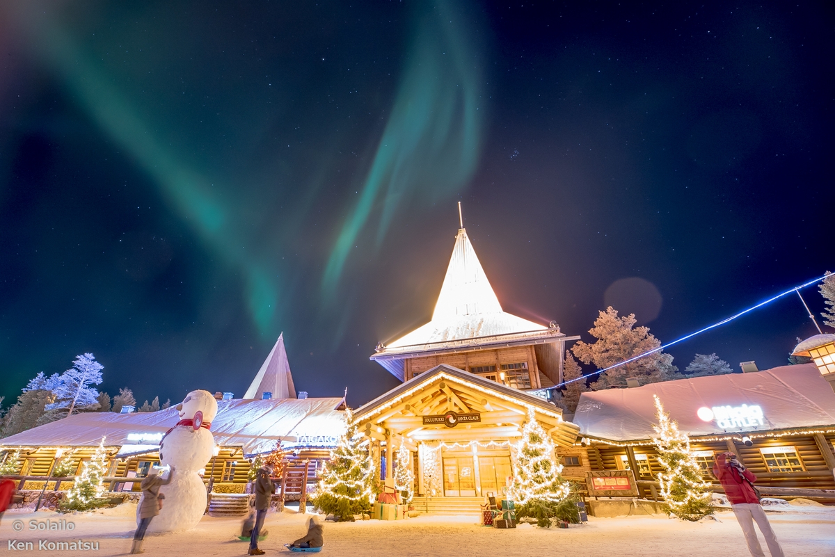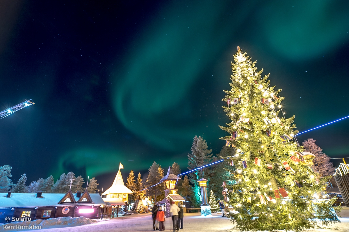 フィンランド・ロバニエミ市、サンタクロース村で、現地12月23日20時11分頃に撮影されたオーロラ。