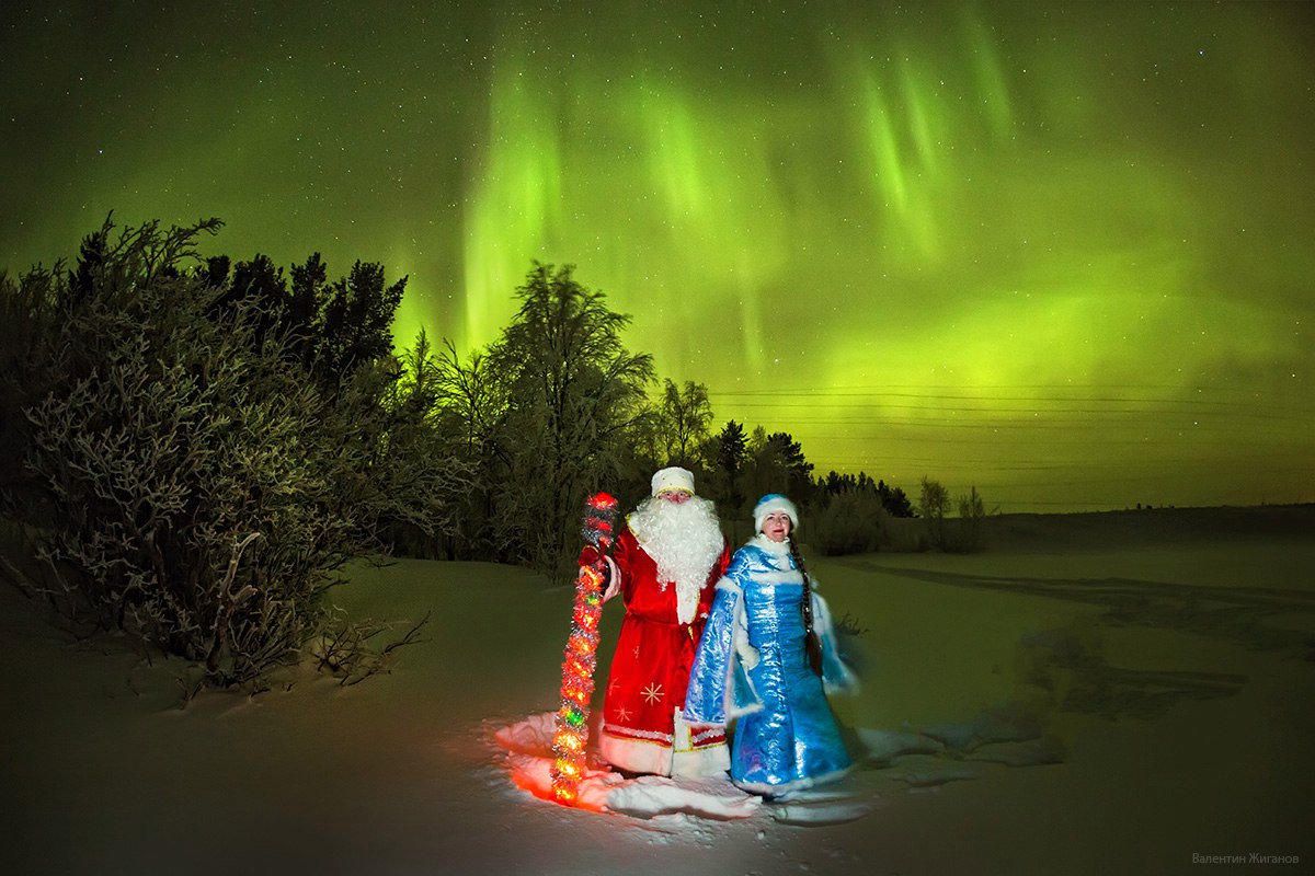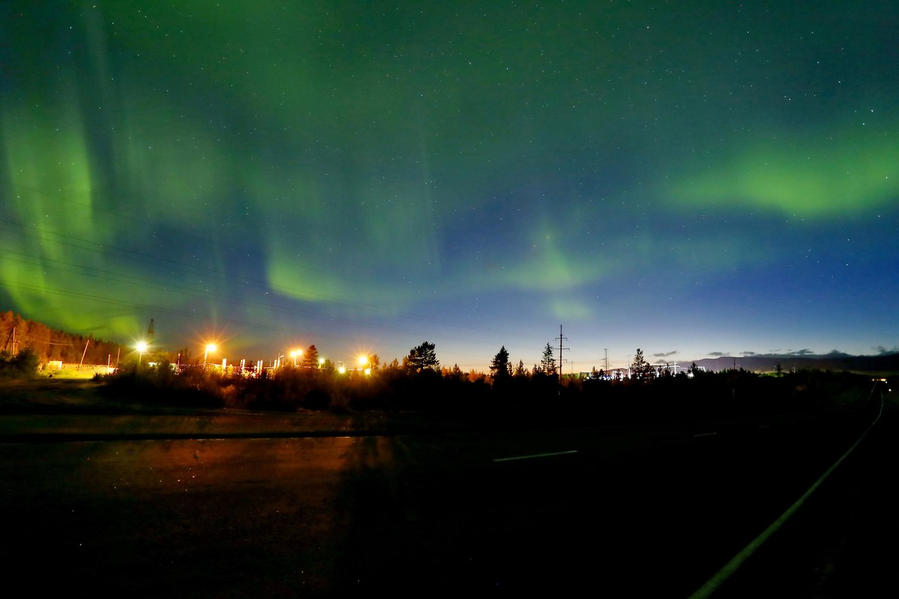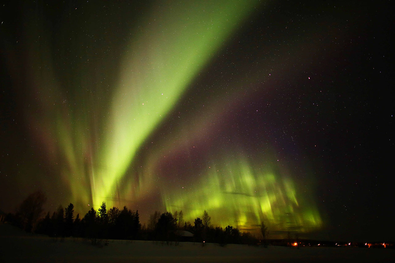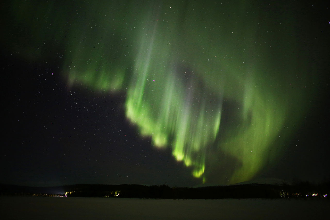 フィンランド・ロバニエミ市、サンタクロース村で、現地12月23日20時11分頃に撮影されたオーロラ。
