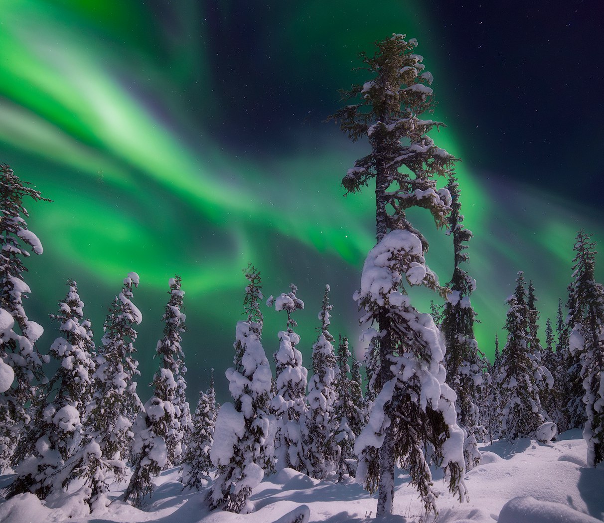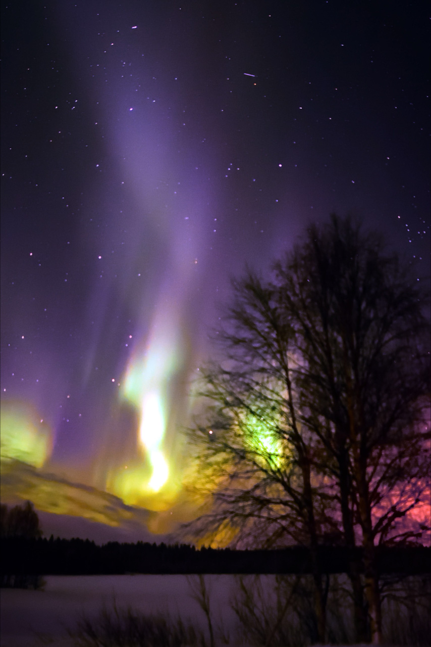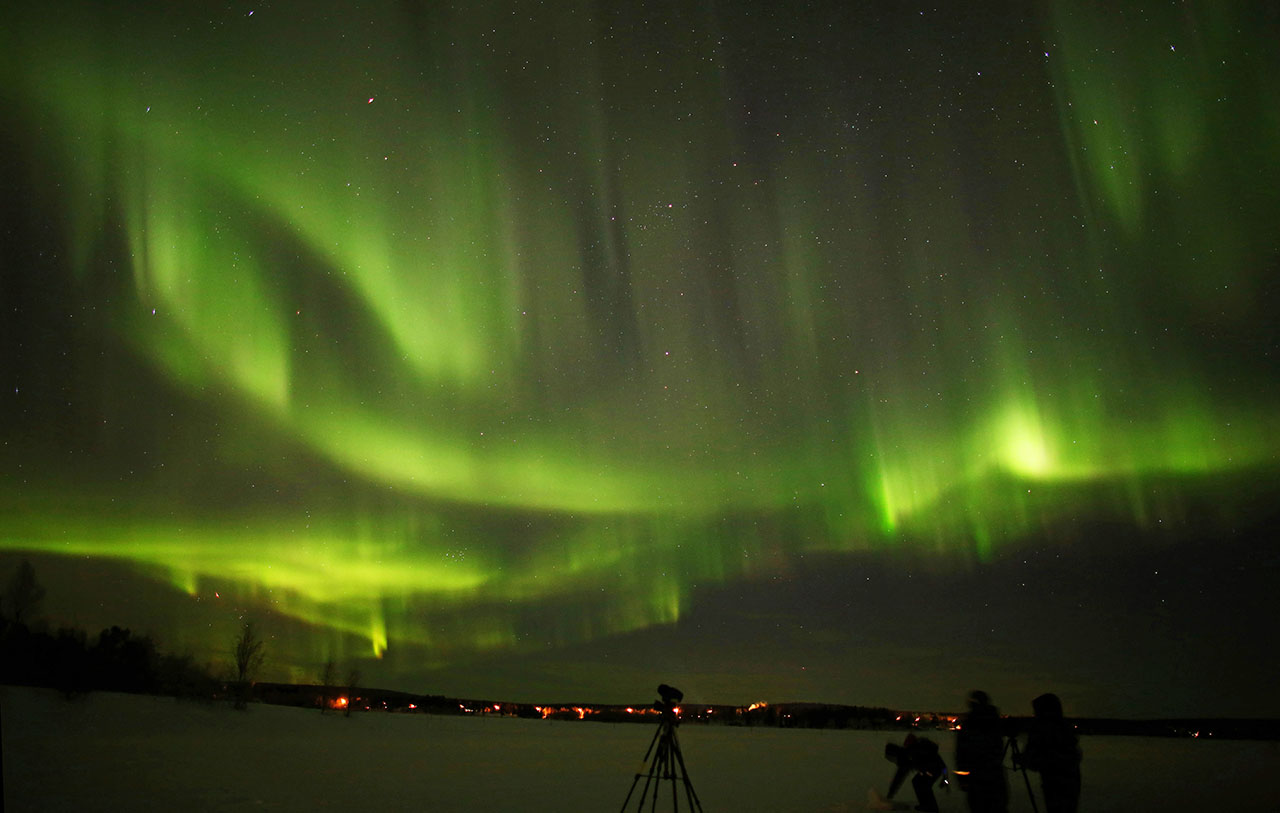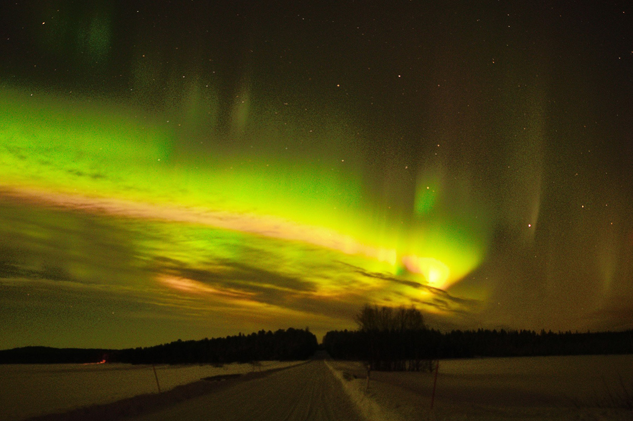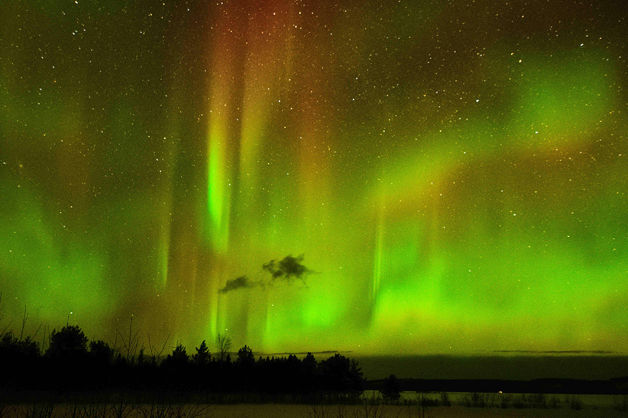 フィンランド・ユッラスで、杉本 智氏により現地3月28〜30日に撮影されたオーロラ。