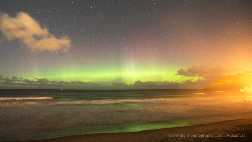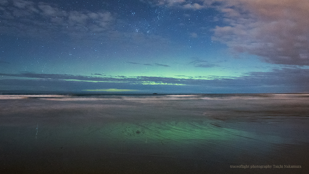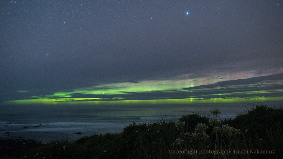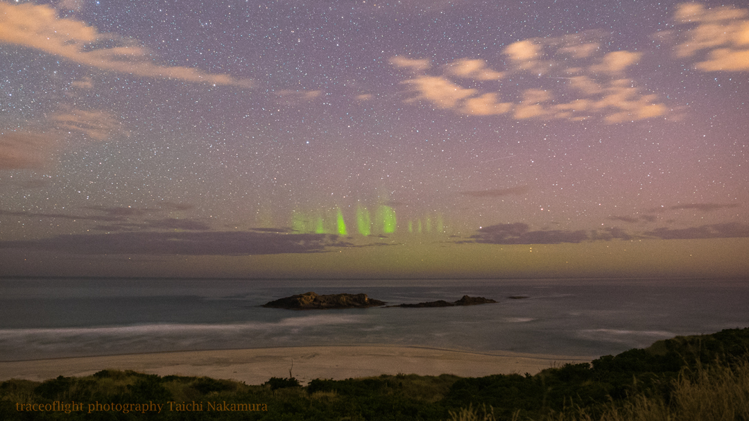 ニュージーランド南島の南岸で、現地4日1時過ぎ(世界時3日13時過ぎ)に撮影されたオーロラ。