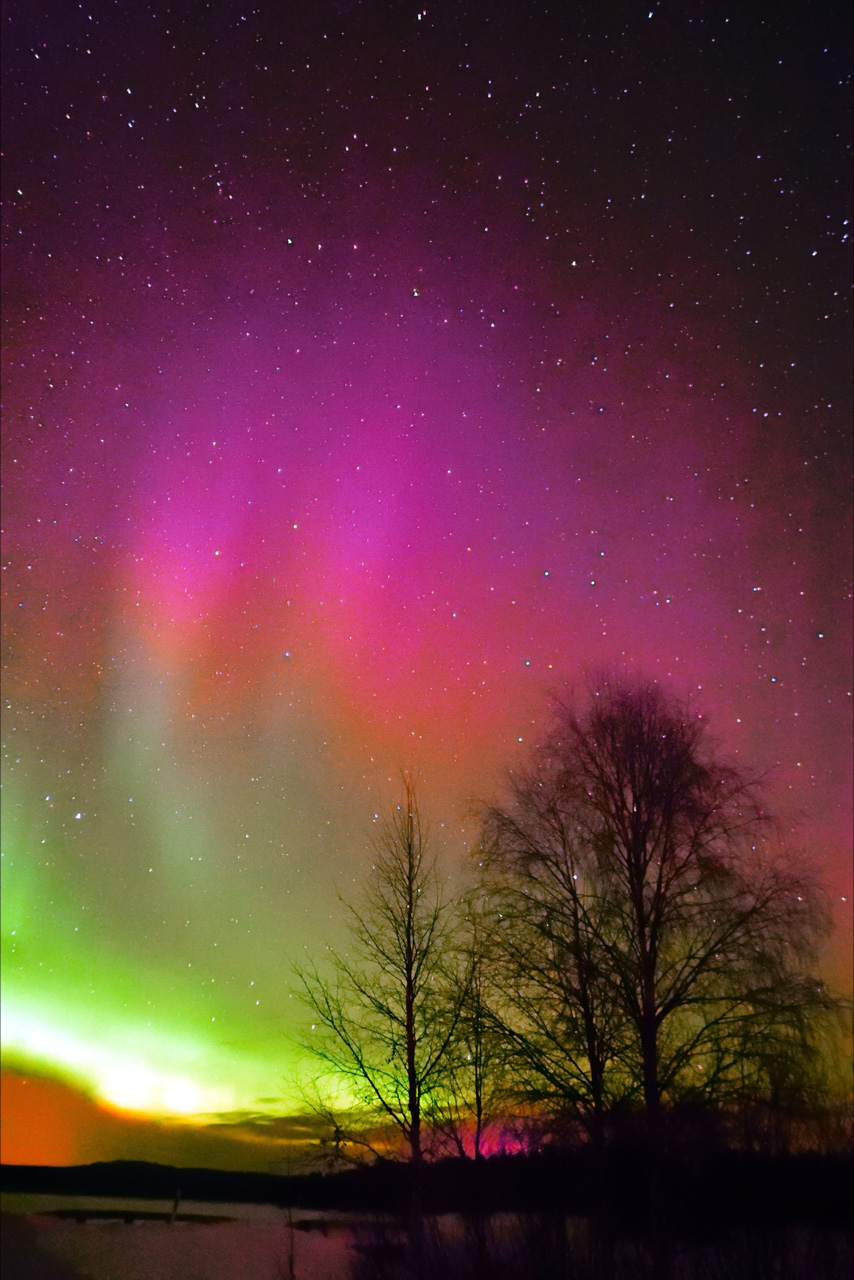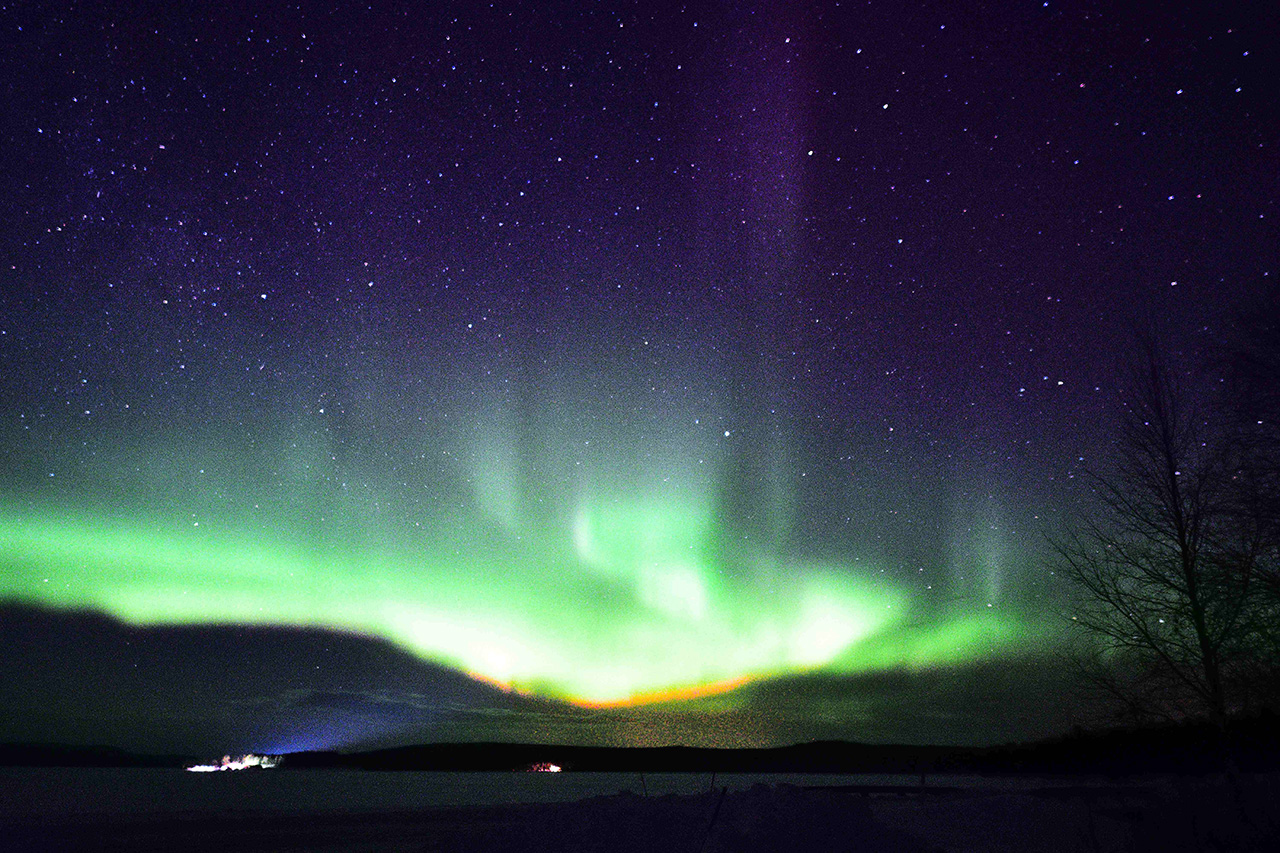 フィンランド・ロバニエミ近くの湖のほとりで、現地3月2日に撮影されたオーロラ。
