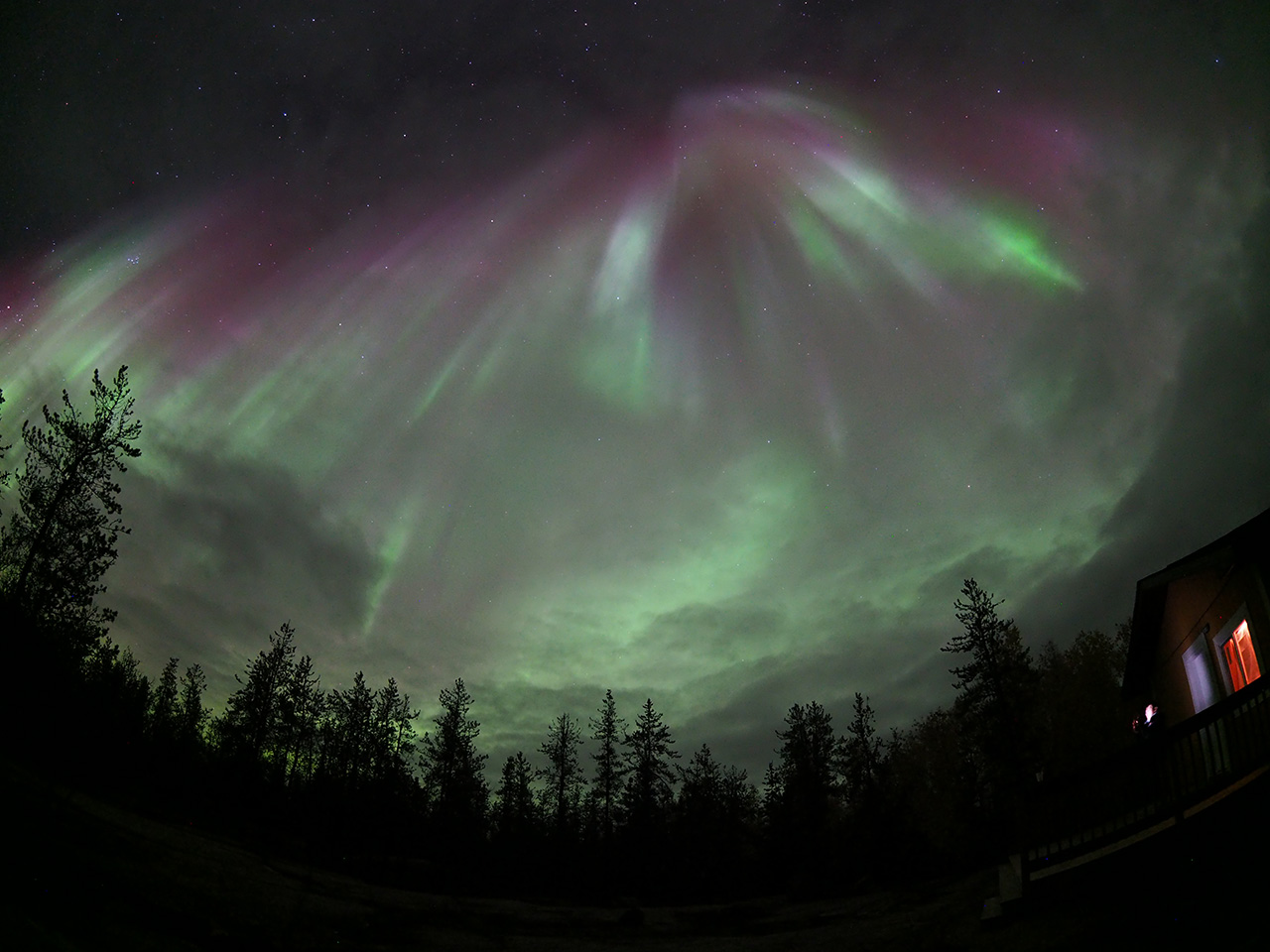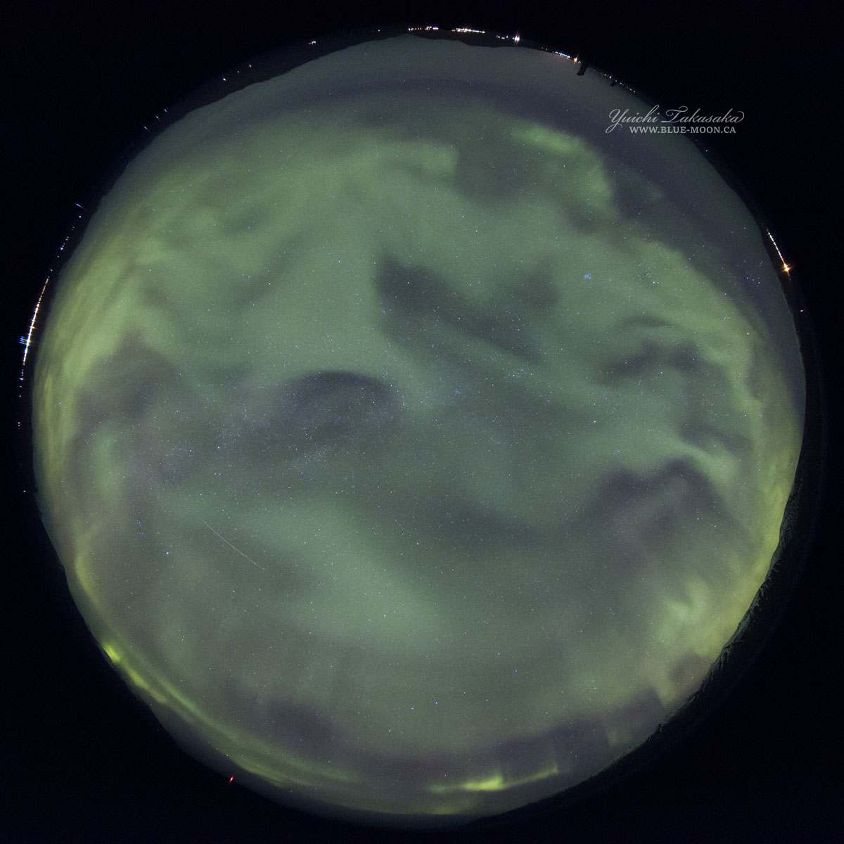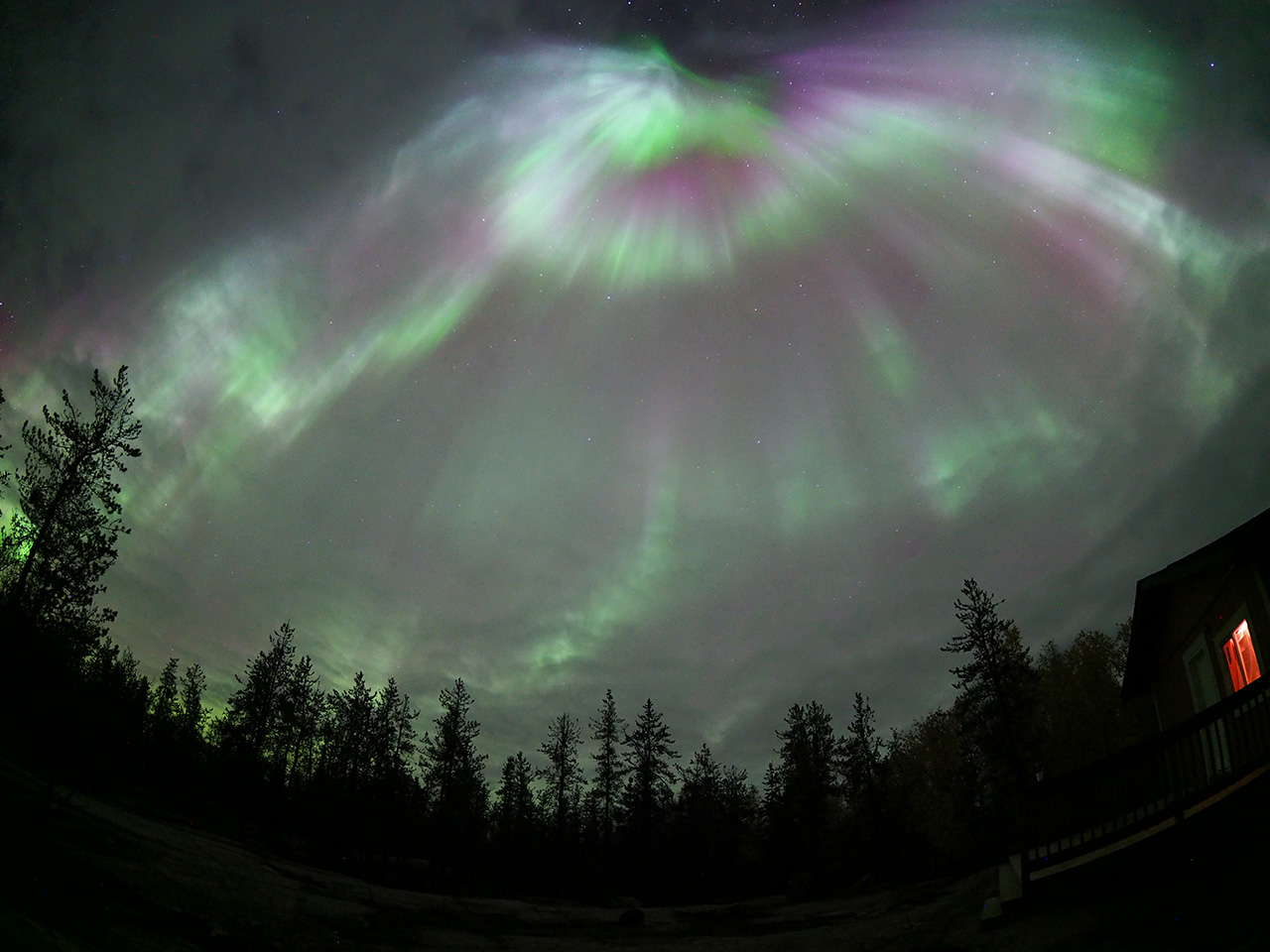 カナダ・ユーコン準州のドーソンシティで、現地8日5時20分(世界時8日12時20分)に撮影されたオーロラ。