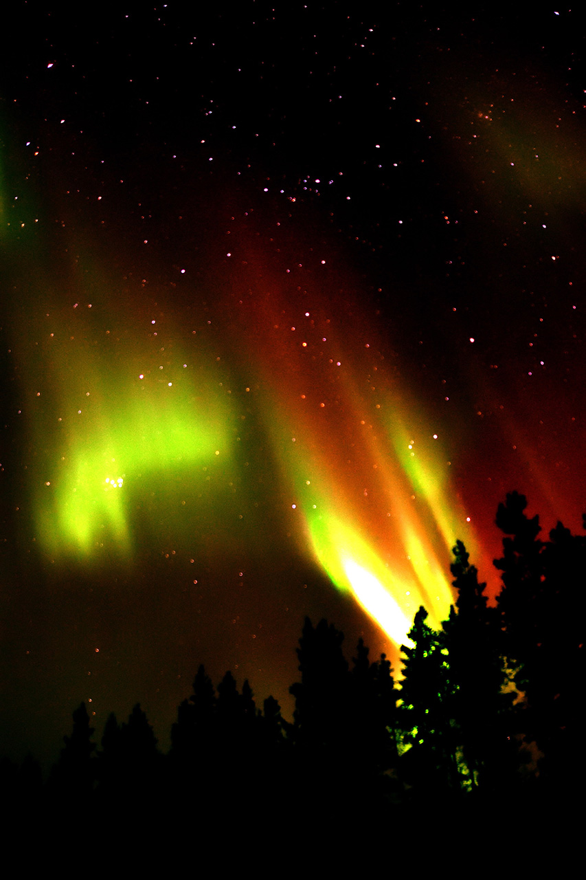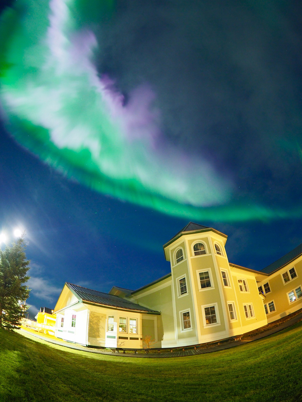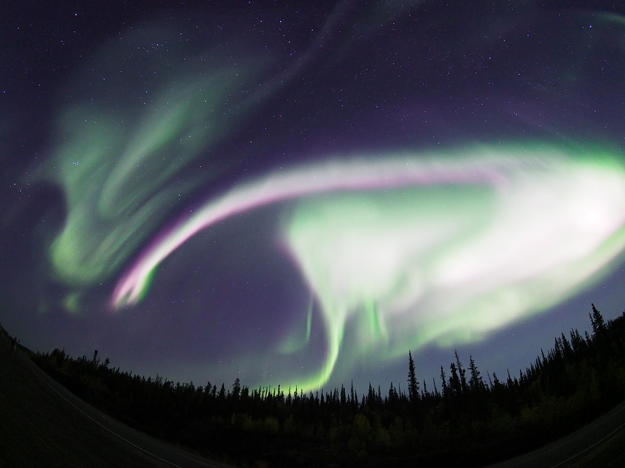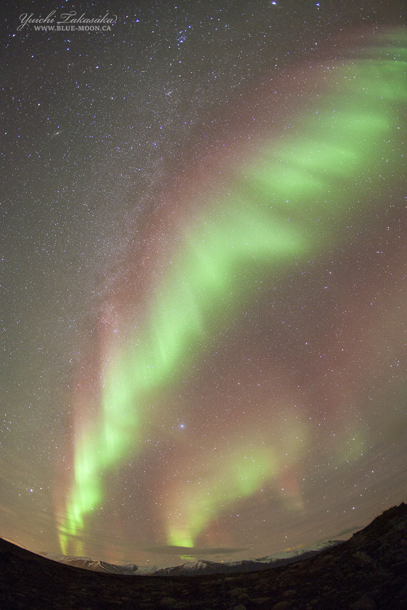 カナダ・ユーコン準州のドーソンシティで、現地8日5時20分(世界時8日12時20分)に撮影されたオーロラ。