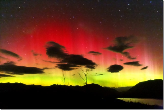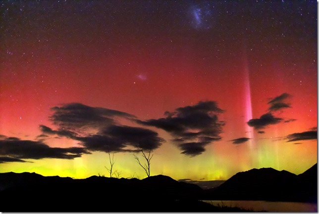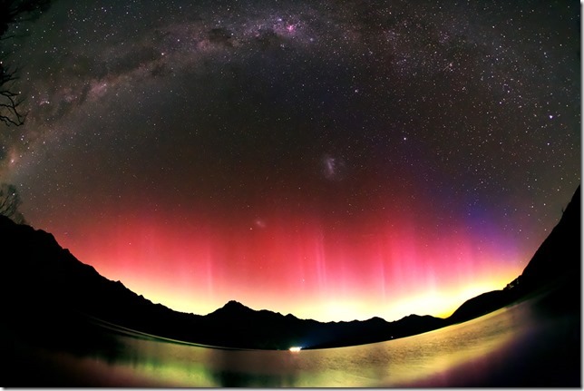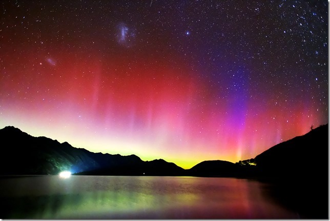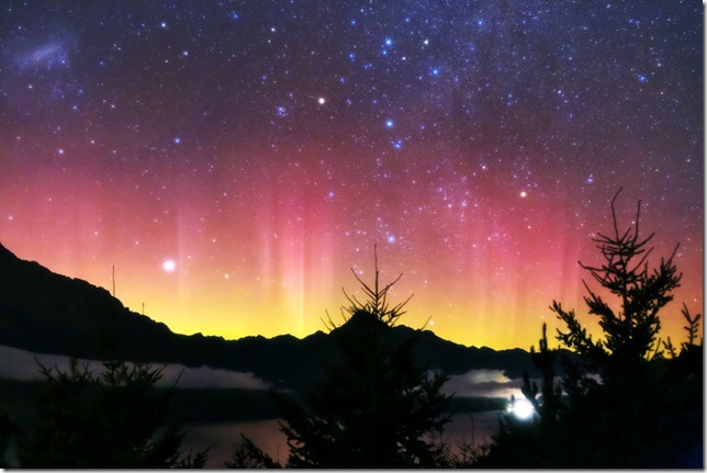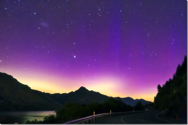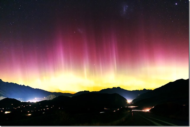 ニュージーランド南島クィーンズタウンで、現地28日18時〜29日1時(世界時28日6時〜13時)に撮影されたオーロラ。