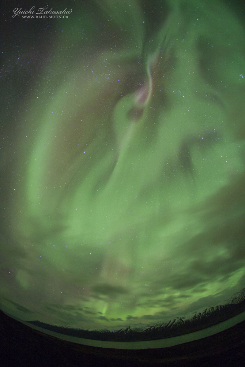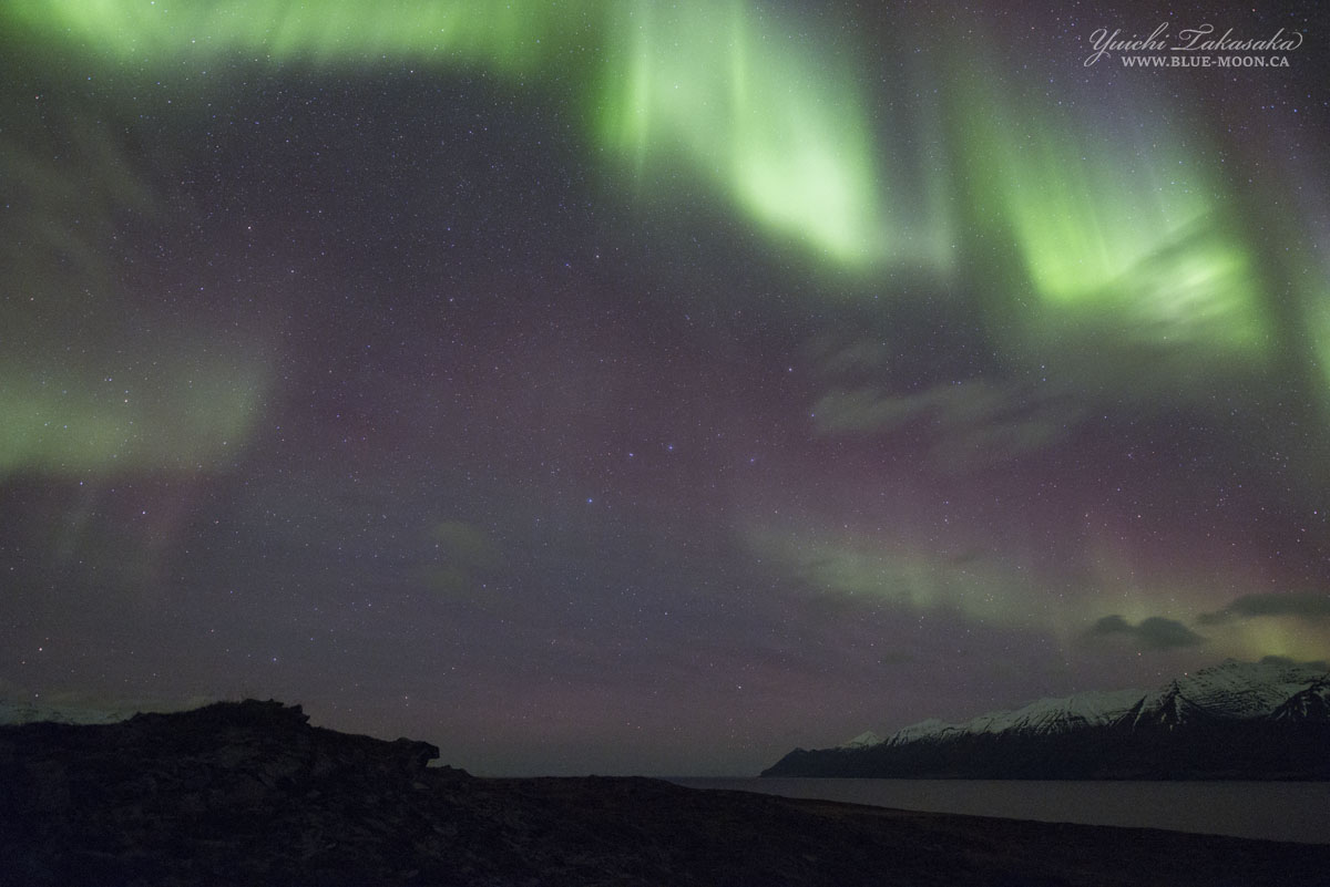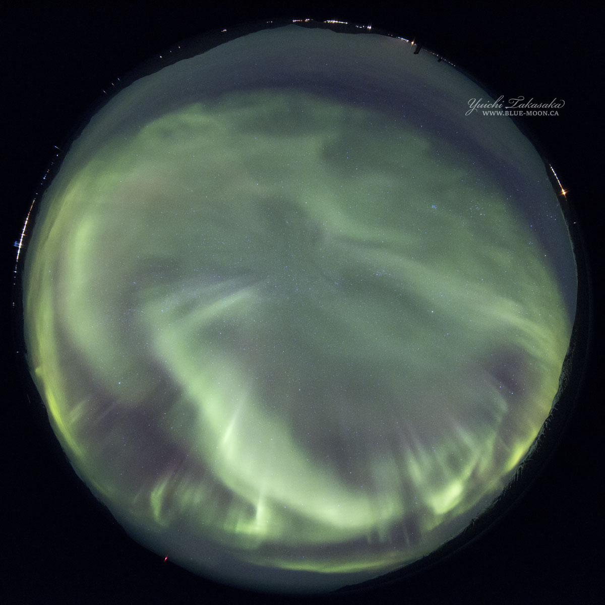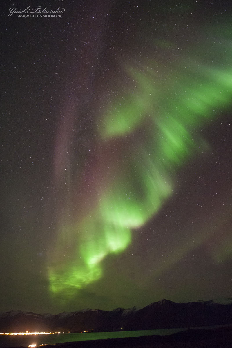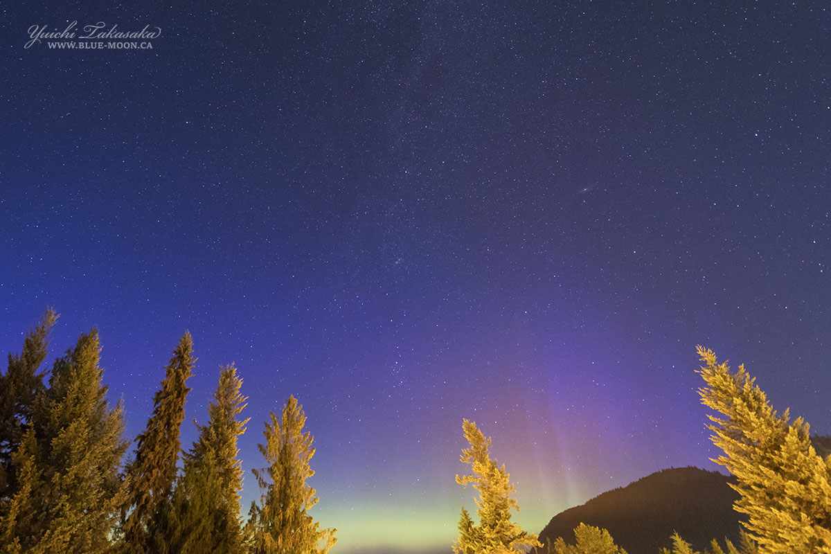 カナダ・ブリティッシュコロンビア・ランビーで、現地2日1時半(世界時2日8時半)に撮影されたオーロラ。
