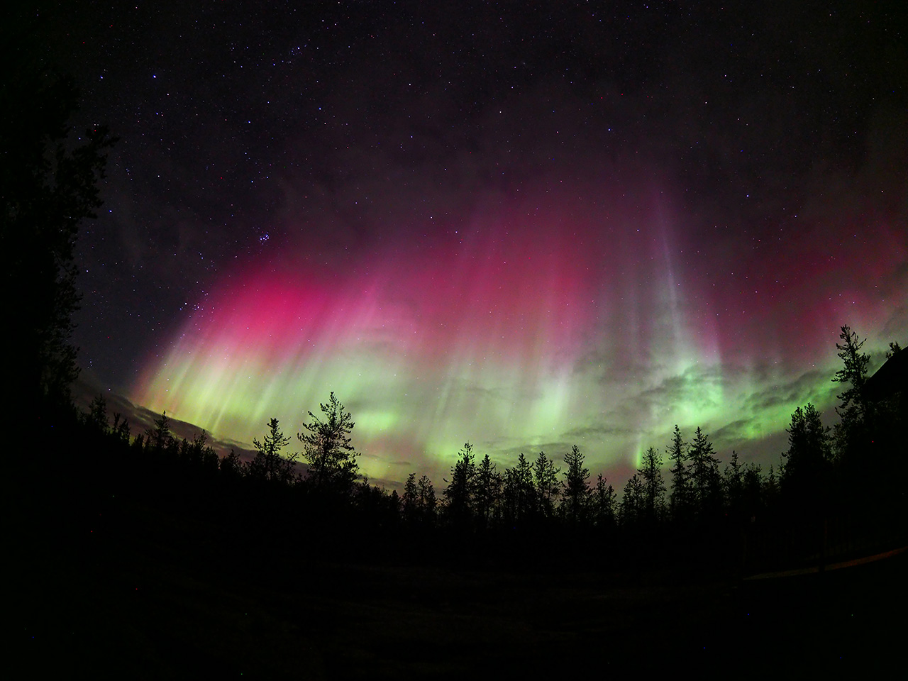 カナダ・ブリティッシュコロンビア・ランビーで、現地25日1時(世界時25日8時)に撮影されたオーロラ。