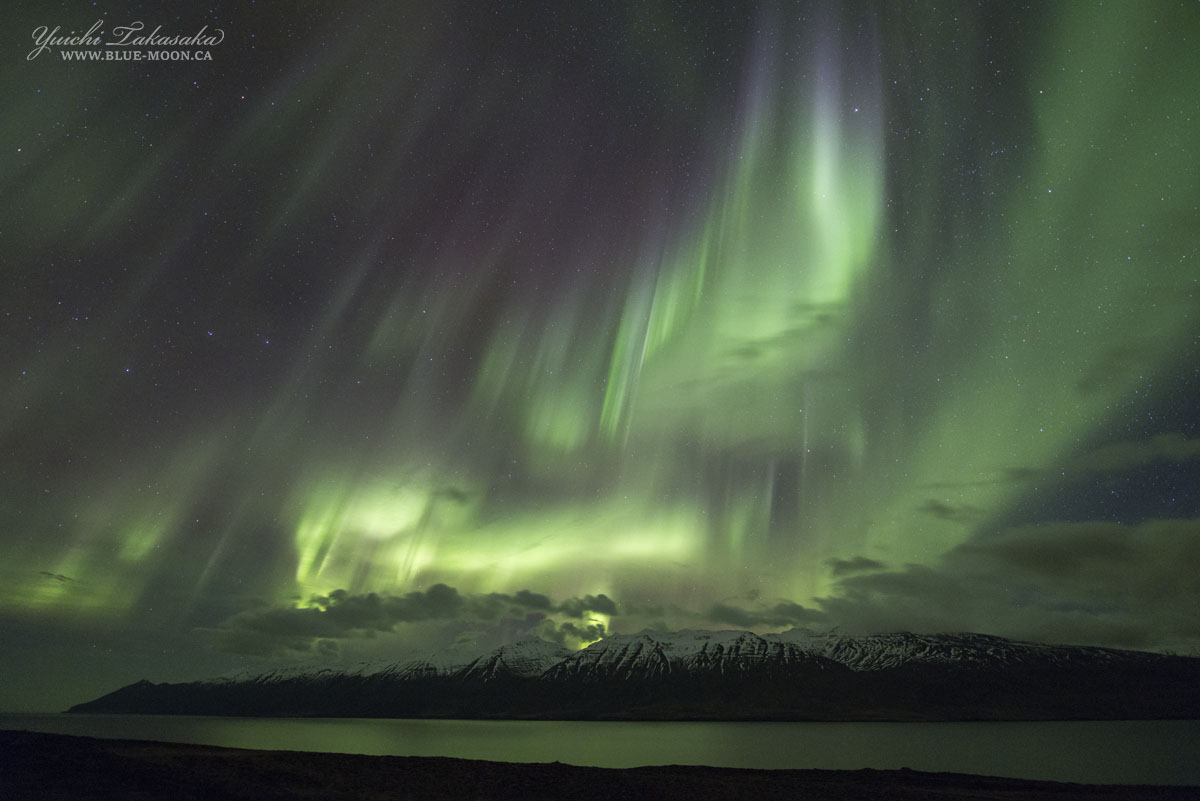 アイスランド北部のフリーセイ島(Hrisey)で、現地22日から23日にかけて撮影されたオーロラ。