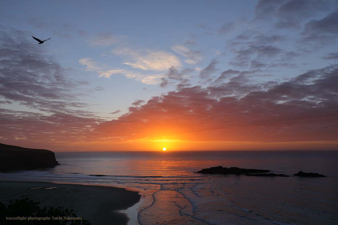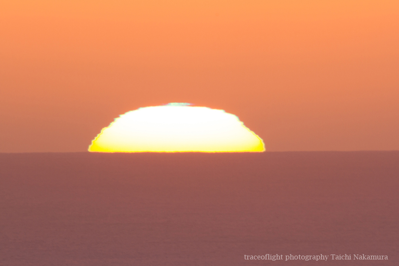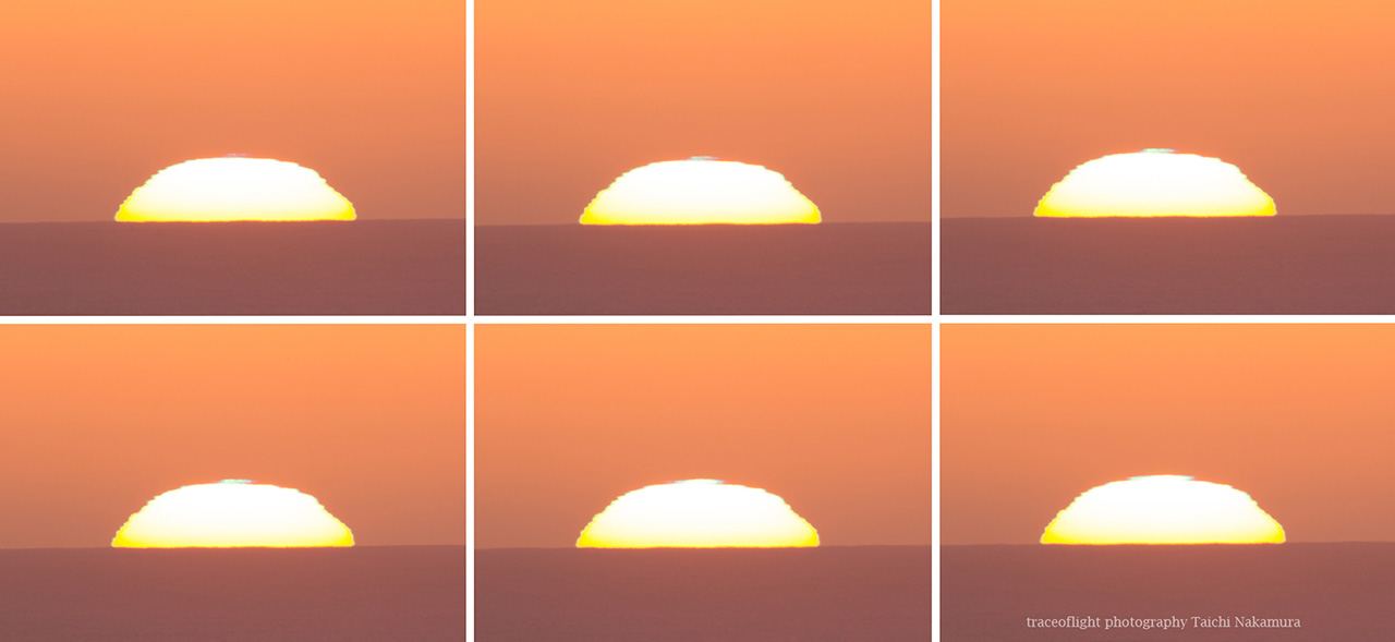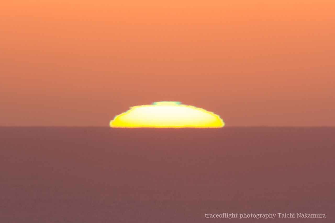 ニュージーランド南島ダニーデンで、現地1日6時頃に発生したグリーンフラッシュ。