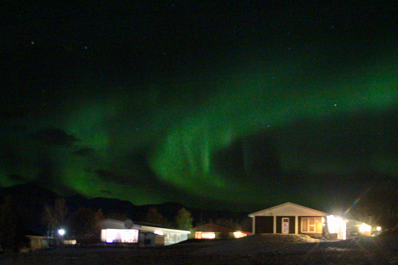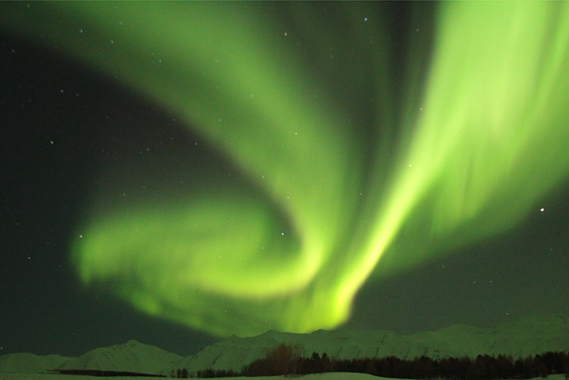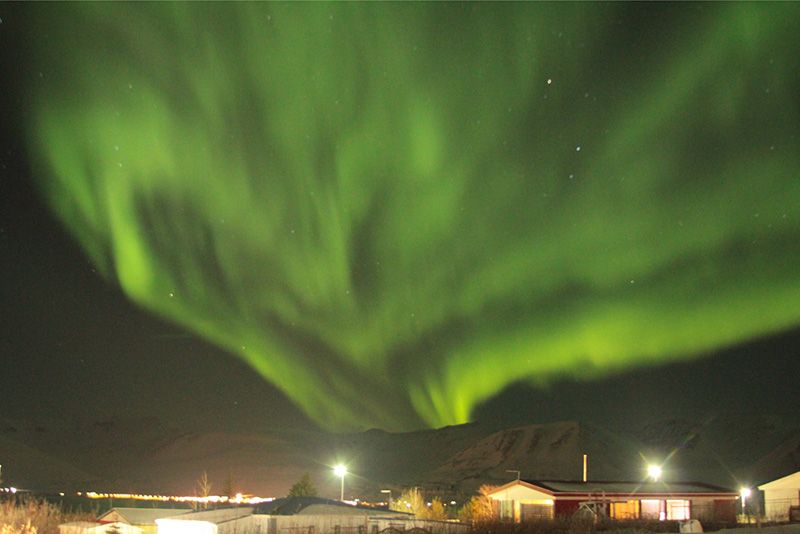 アイスランド北部のHrisey島で、世界時16日23時に撮影されたオーロラ。
