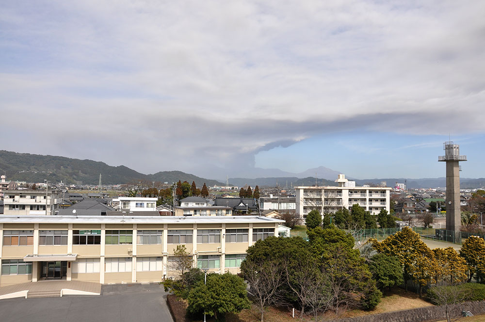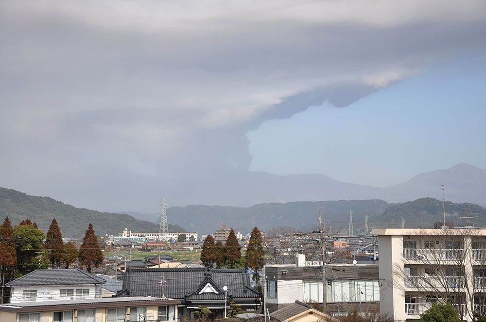 霧島山新燃岳から上がる噴煙。3月6日13時撮影。