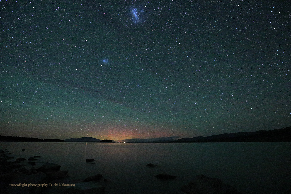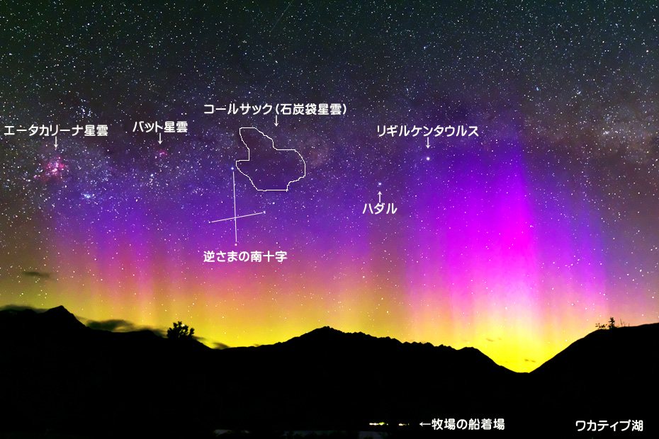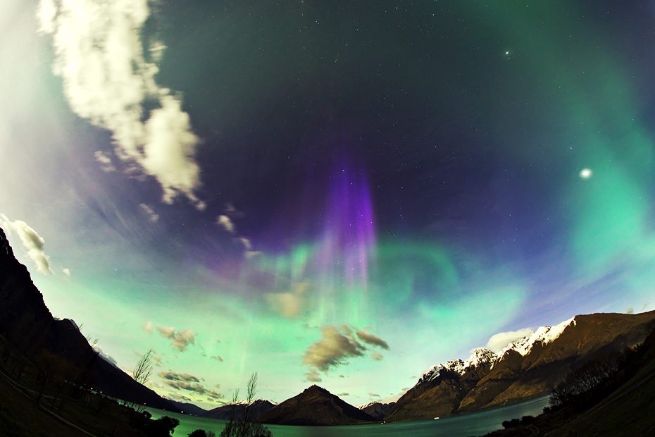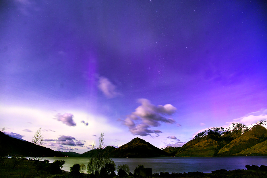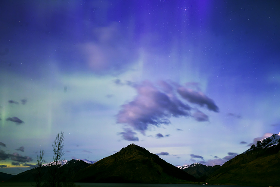 ニュージーランド南島クィーンズタウンで、現地26日19時30分(世界時26日7時30分)頃に撮影されたオーロラ。