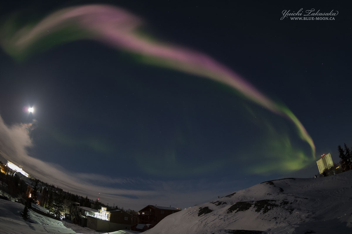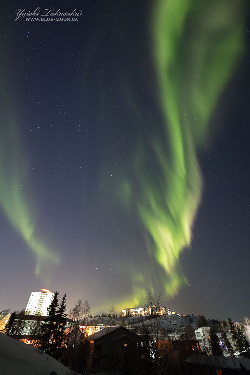 カナダ、イエローナイフで、現地3月31日23時〜2時にかけて撮影されたオーロラ。