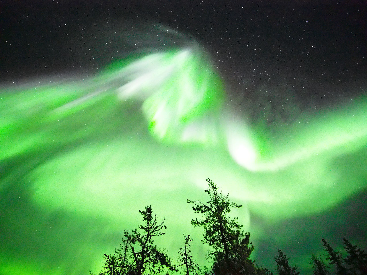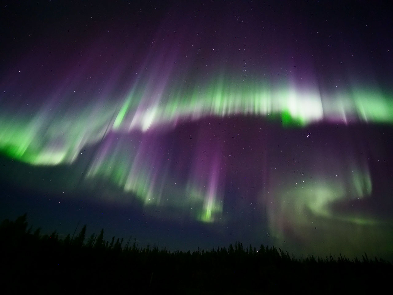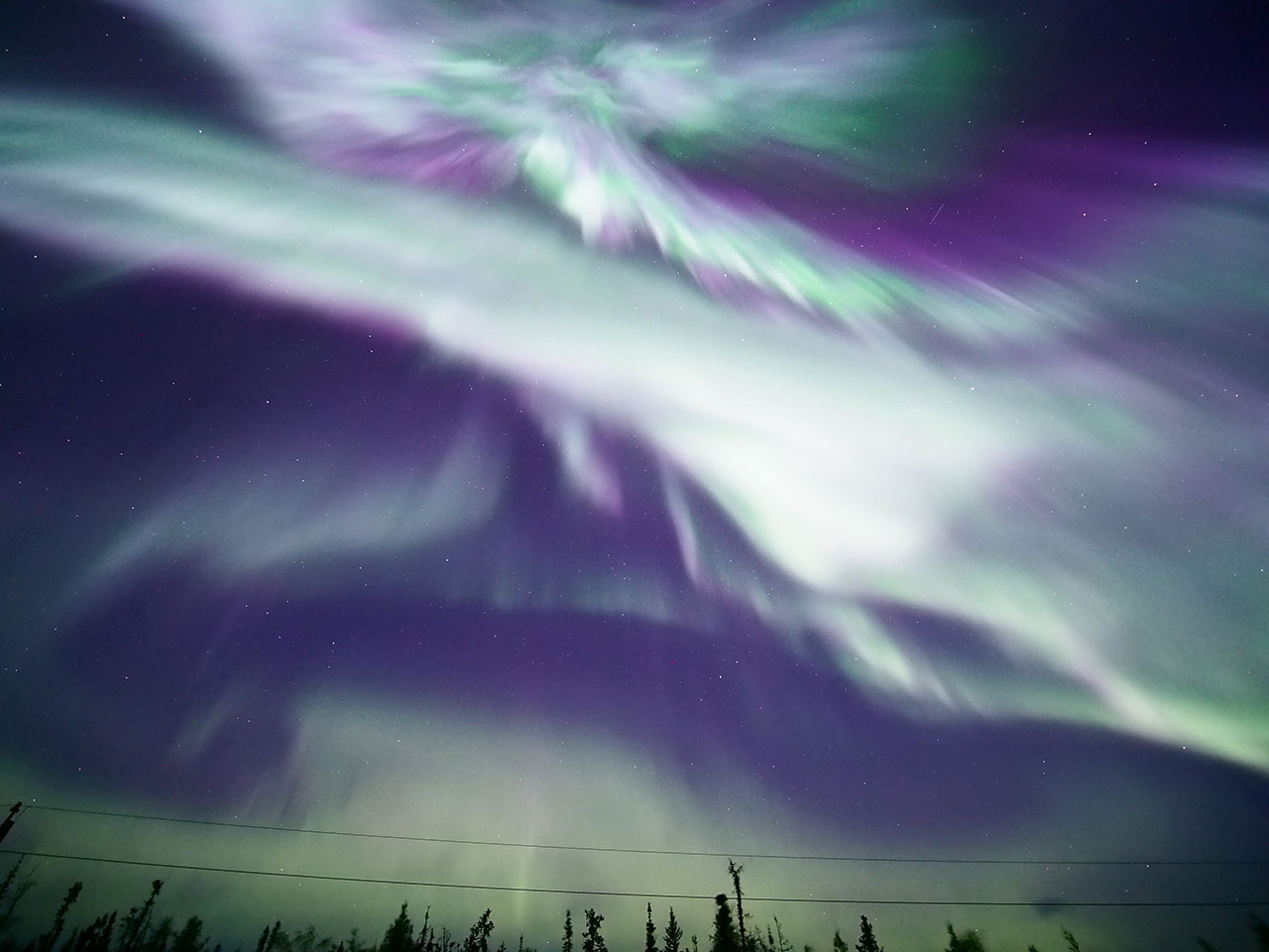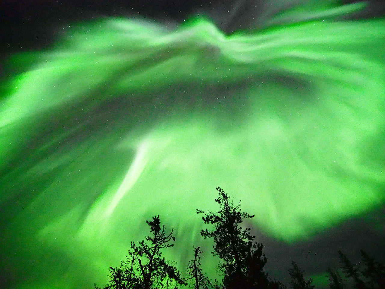 イエローナイフで、現地5日夜(世界時6日前半)頃に撮影されたオーロラ。