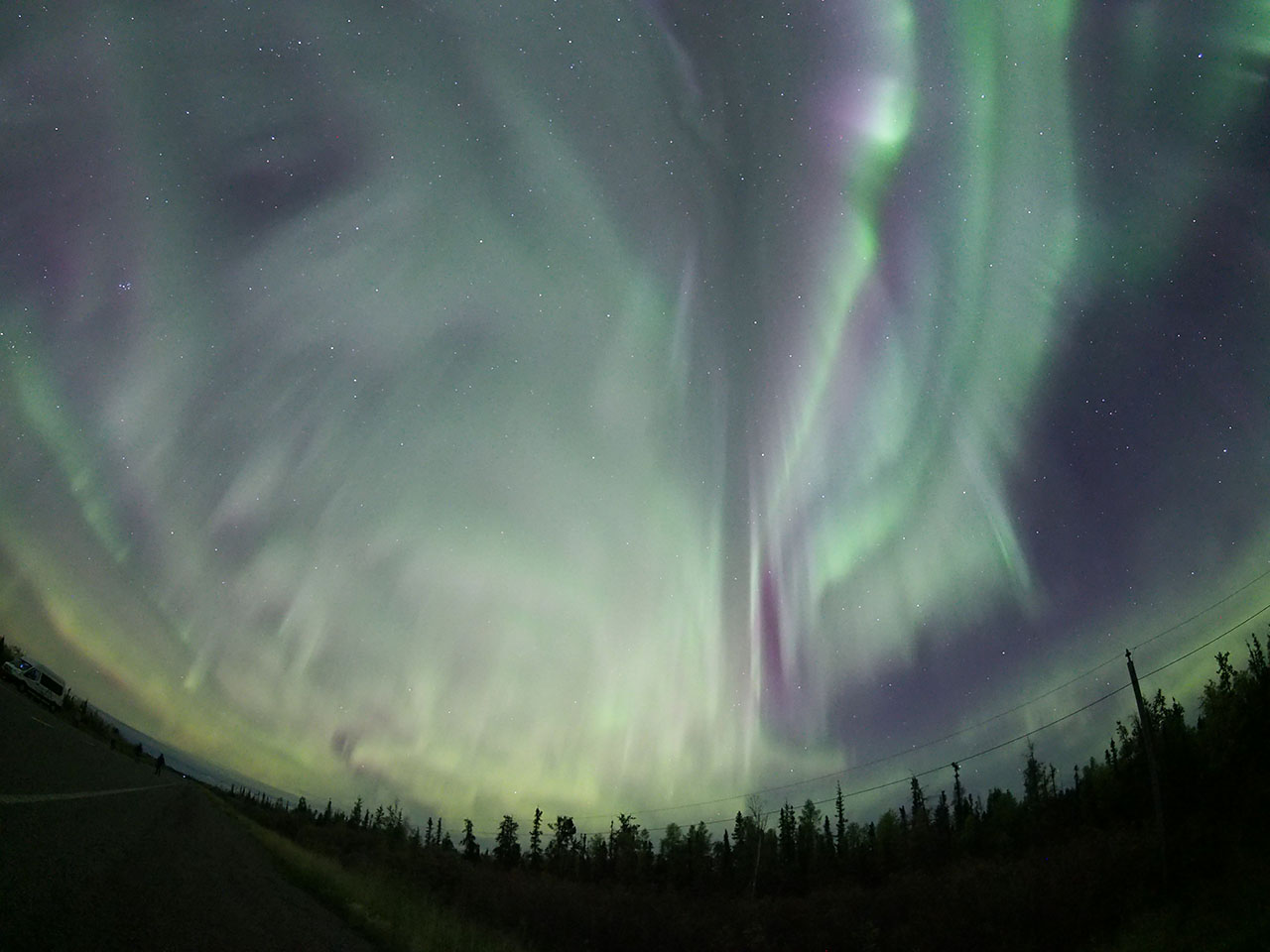 イエローナイフで、現地9月3日1時半(世界時3日7時半)に撮影されたオーロラ。