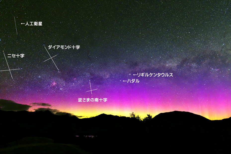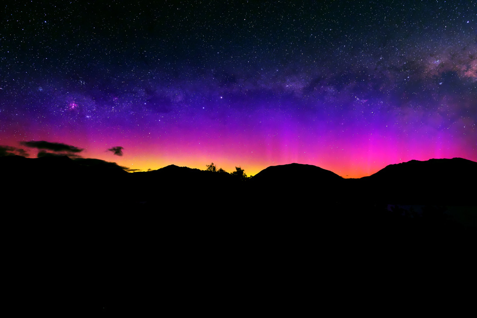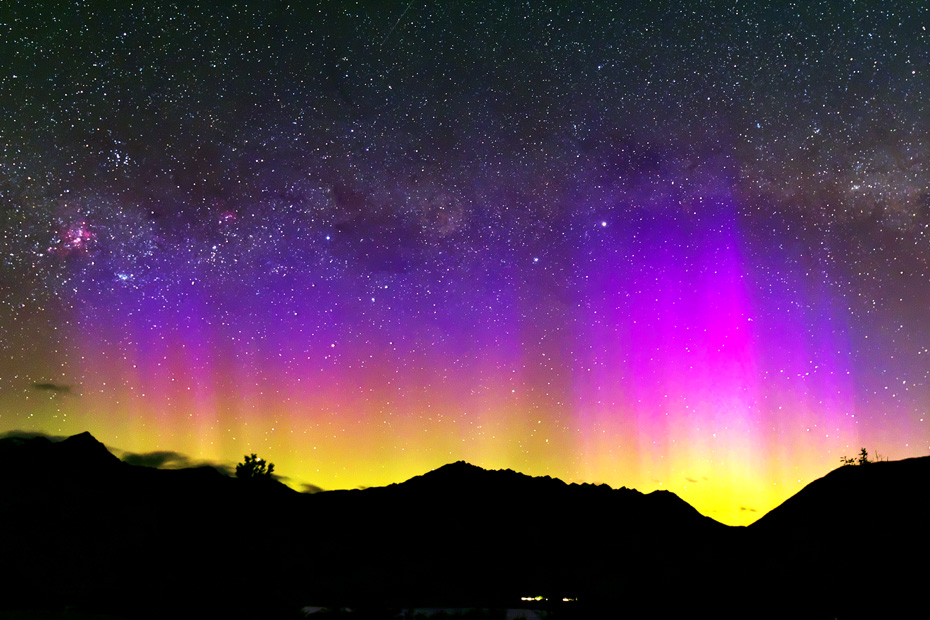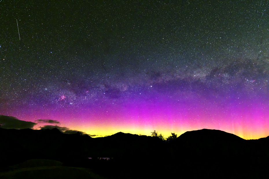 ニュージーランド南島クィーンズタウンで、現地5日22〜23時(世界時5日9〜10時)に撮影されたオーロラ。