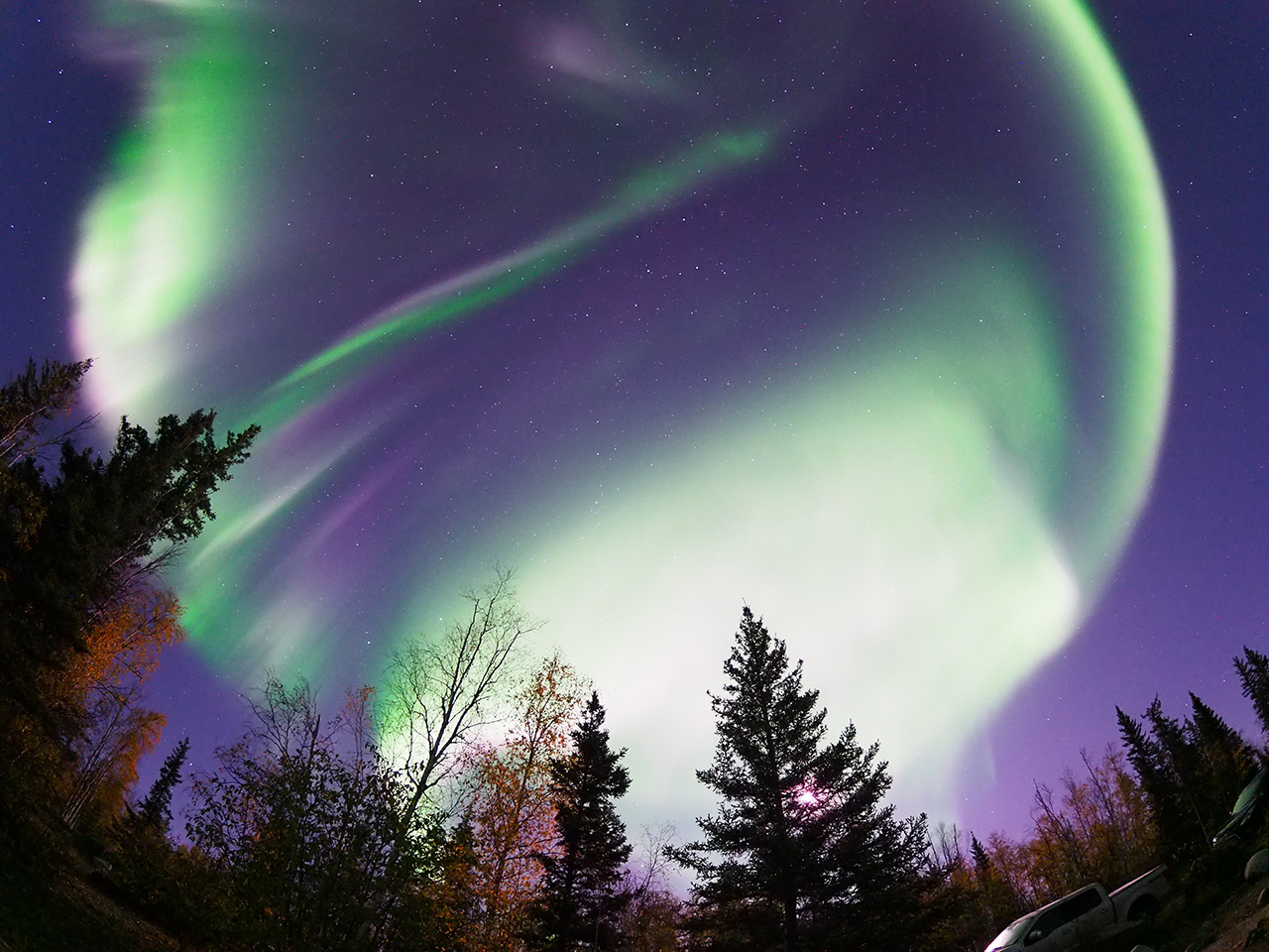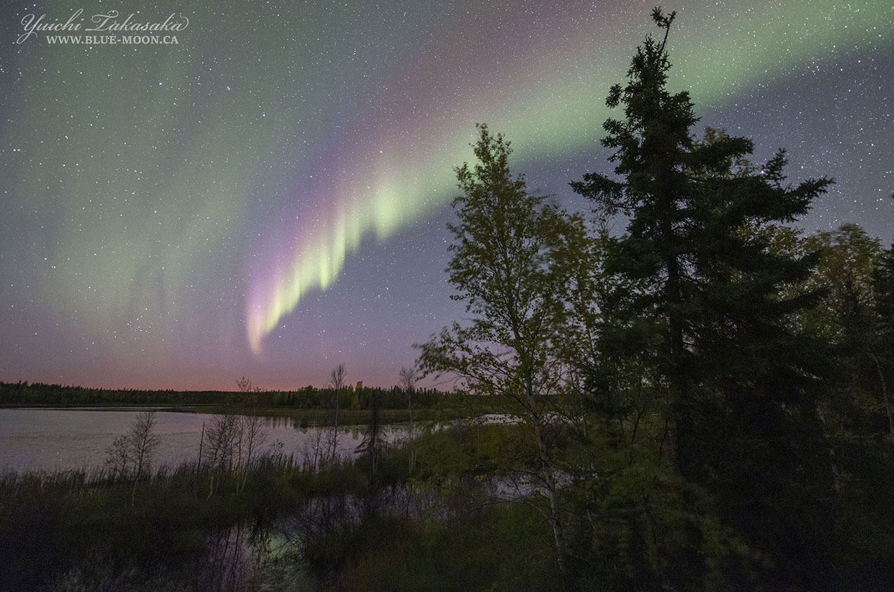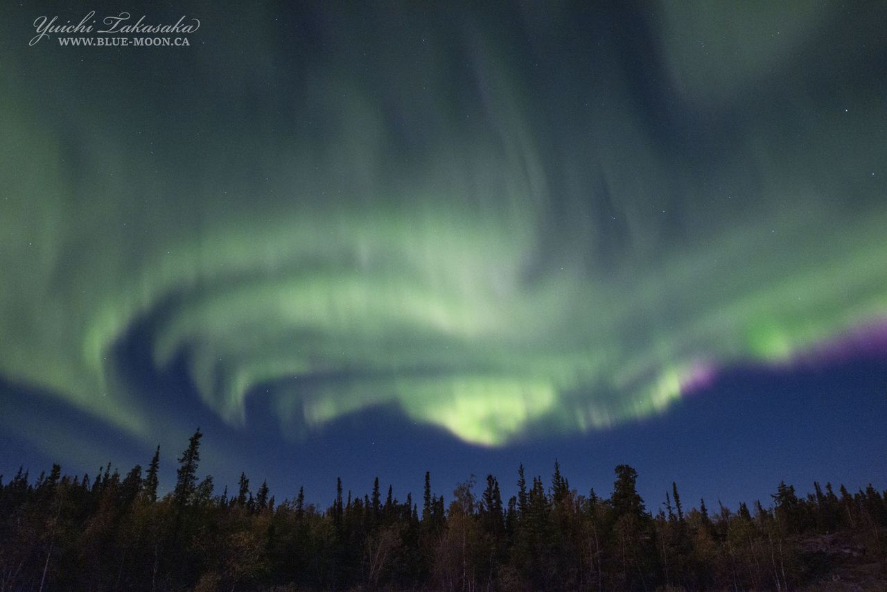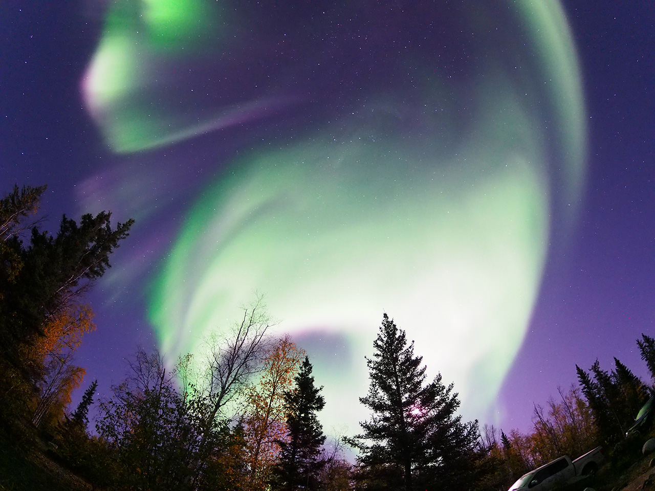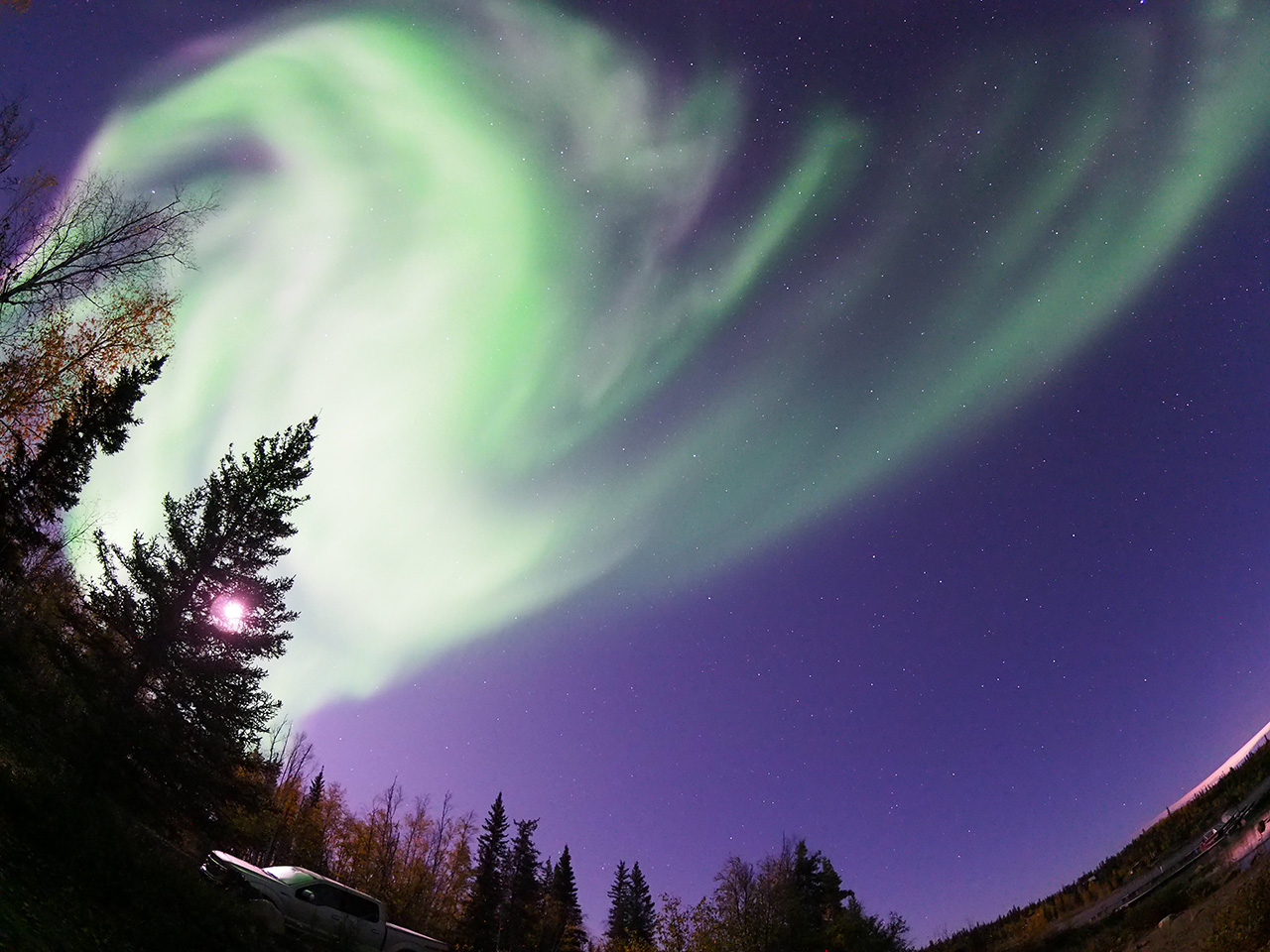 カナダ・イエローナイフで、現地19日1時52分(世界時19日7時52分)に撮影されたオーロラ。