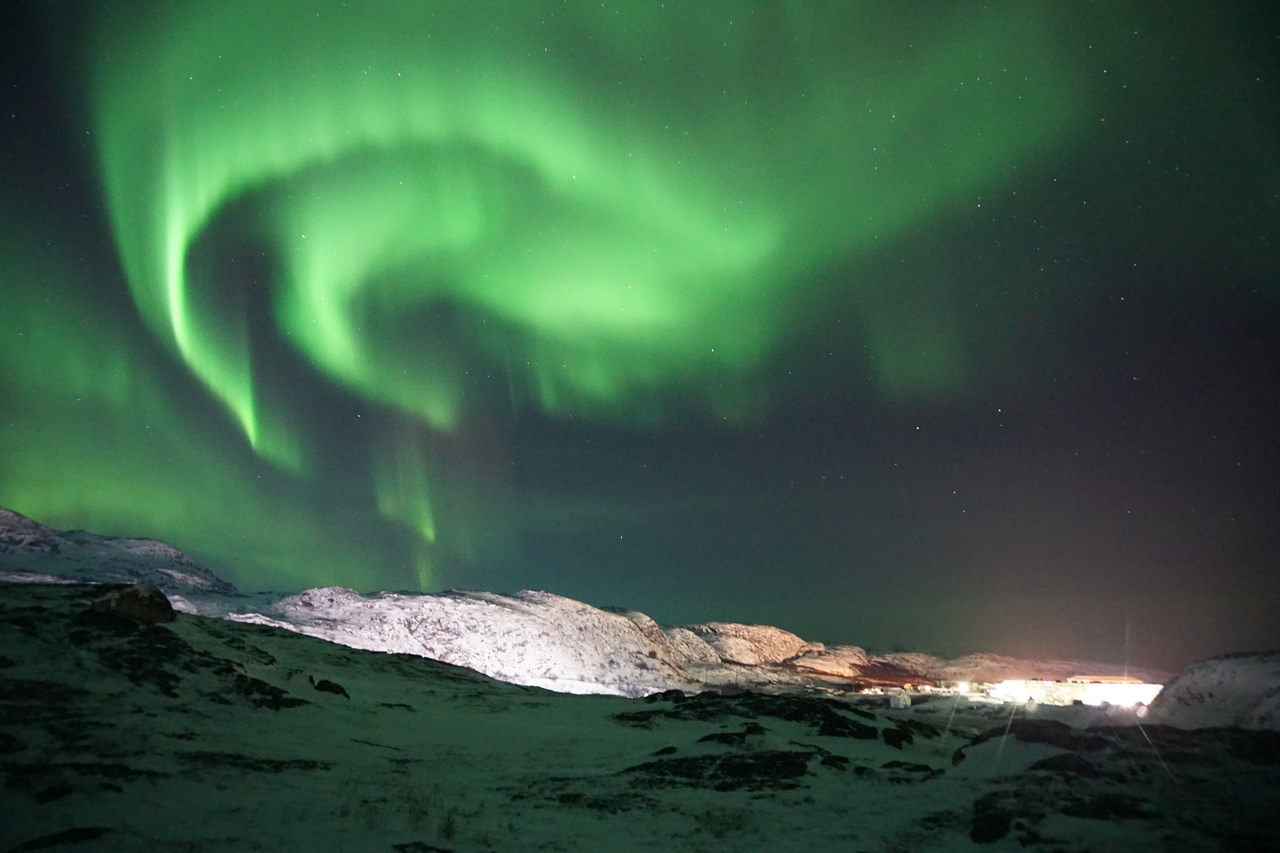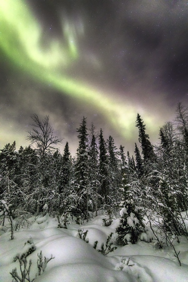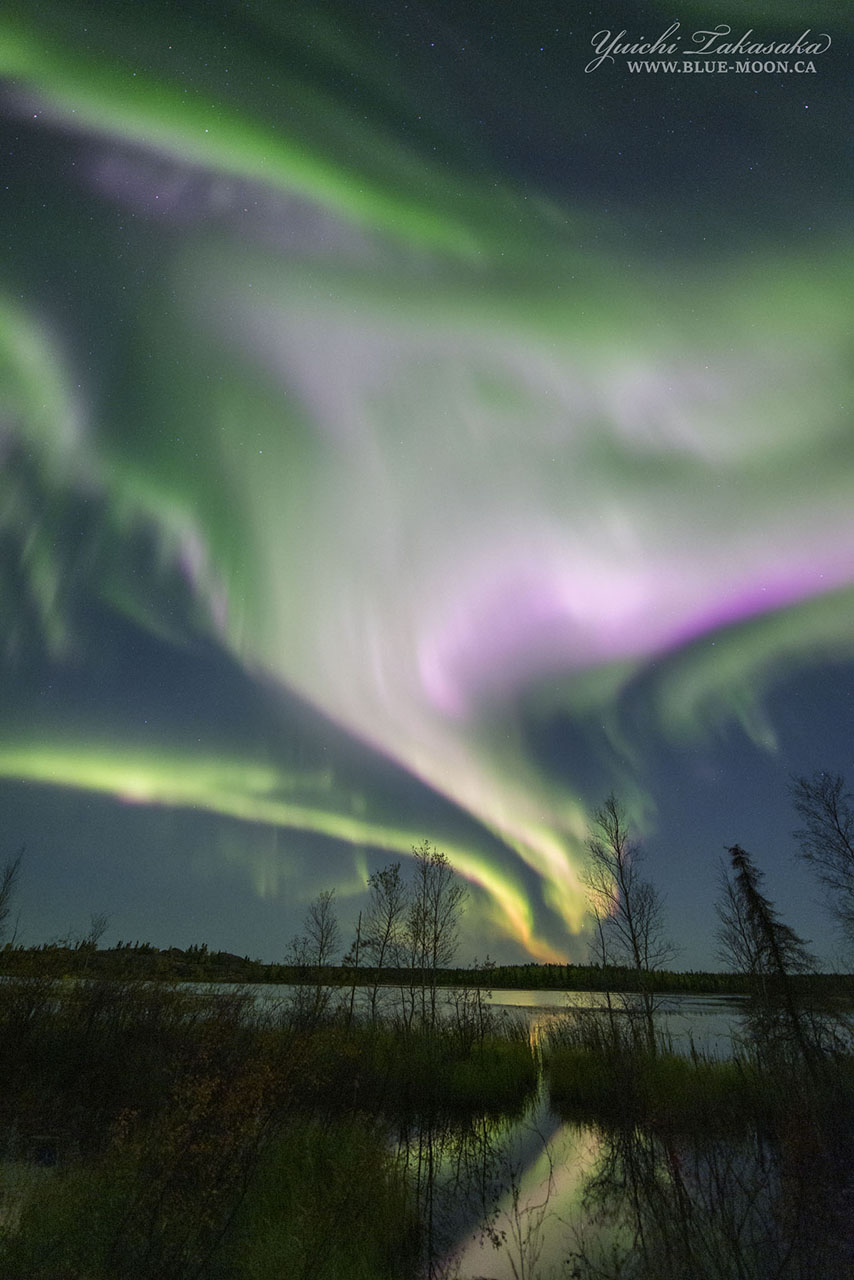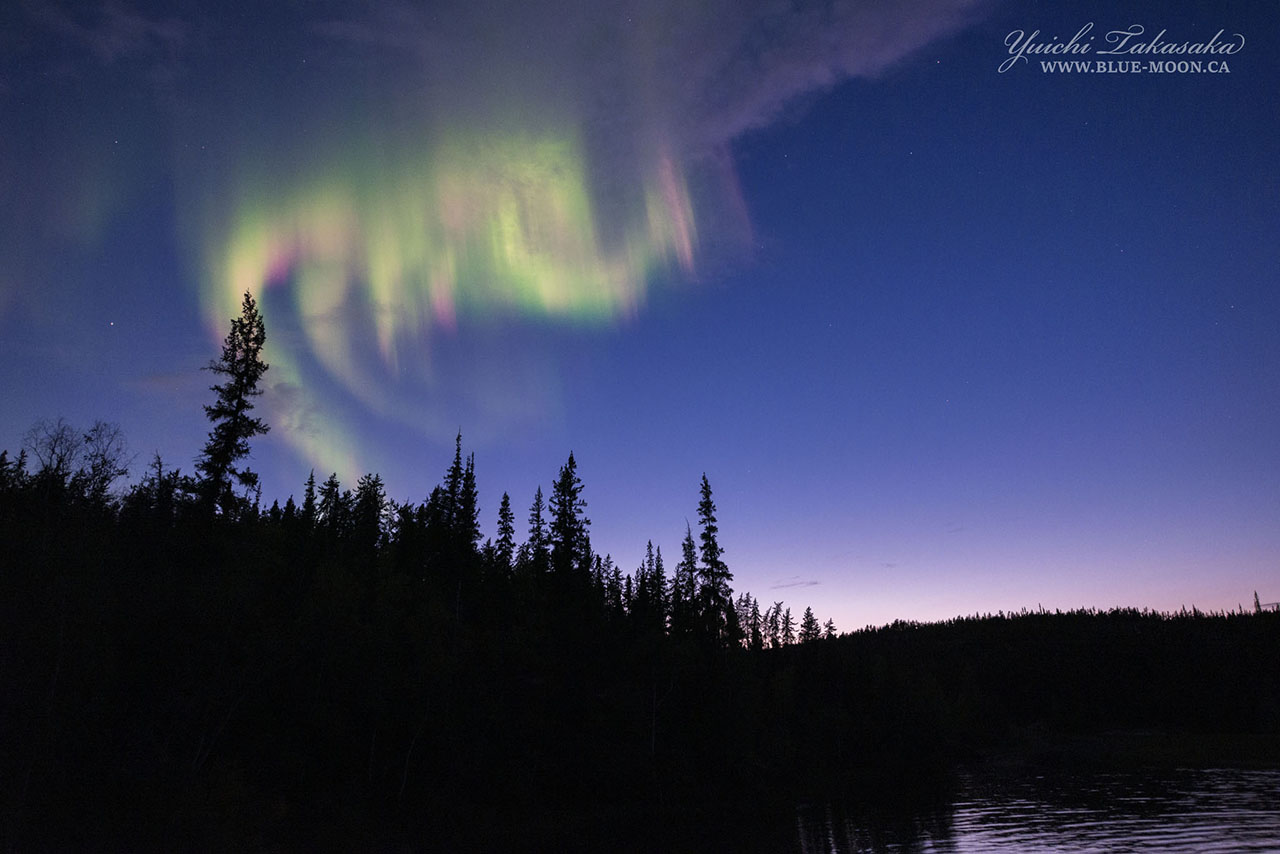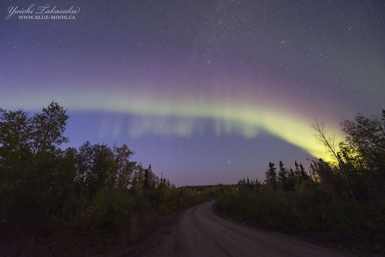 カナダ・イエローナイフで、現地19日1時52分(世界時19日7時52分)に撮影されたオーロラ。