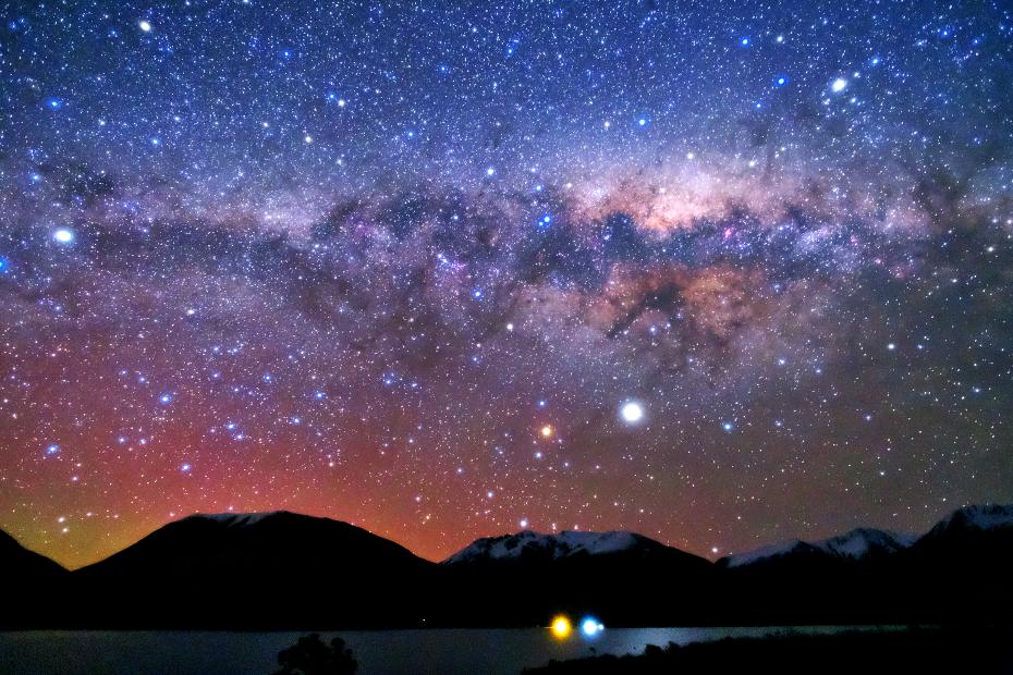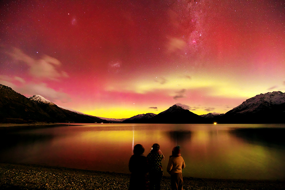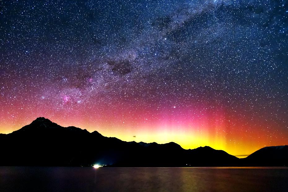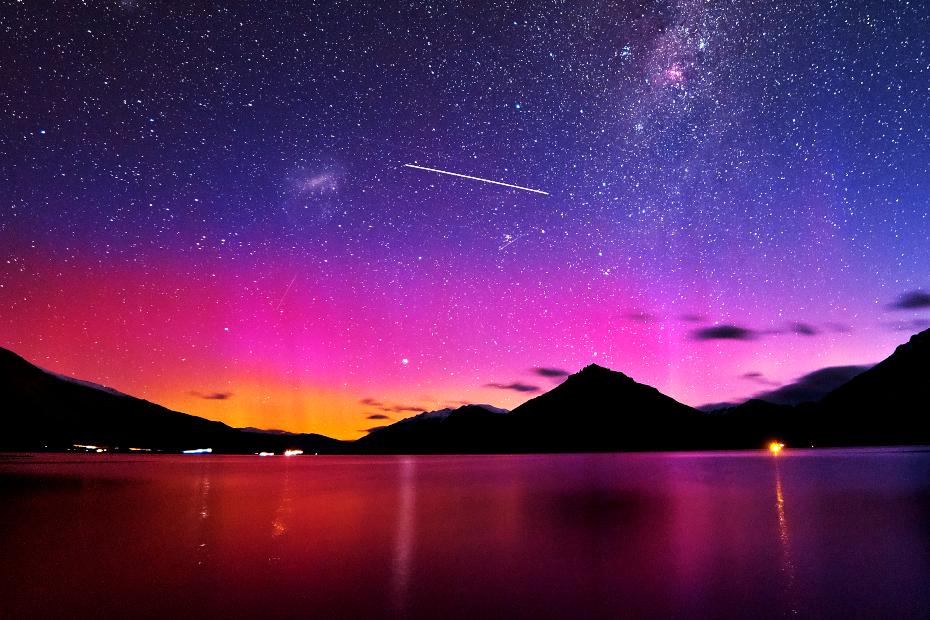 ニュージーランド南島クィーンズタウンで、現地5日21時25分(世界時5日9時25分)に撮影されたオーロラ。