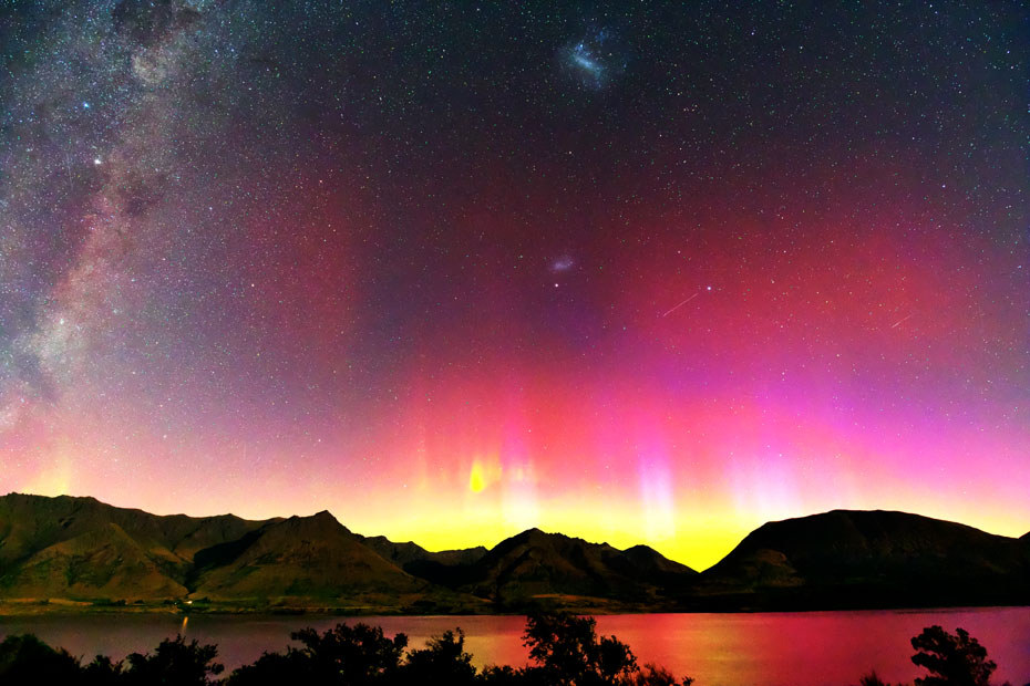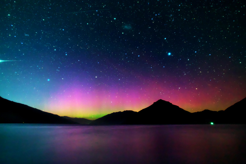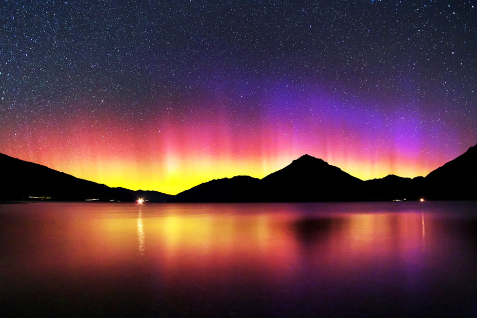 ニュージーランド南島クィーンズタウンで、現地13日22時(世界時13日9時)に撮影されたオーロラ。